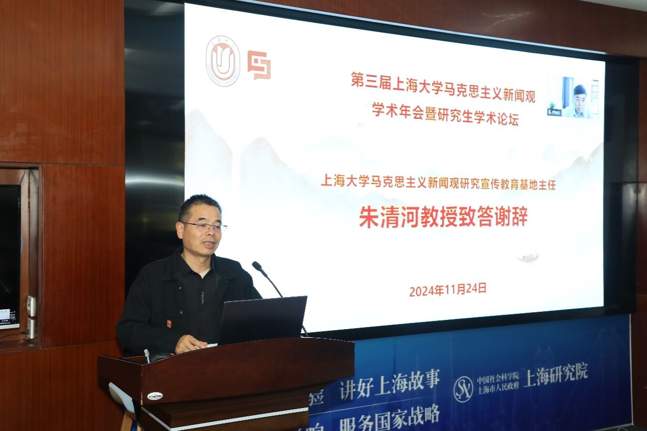 最后,由Beat365唯一官方网站马克思主义新闻观研究宣传教育基地主任朱清河教授致答谢辞。