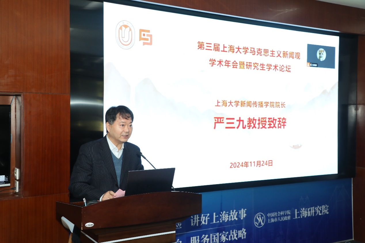 Beat365唯一官方网站新闻传播学院院长严三九教授热烈欢迎各位与会专家学者深入探讨马新观与新闻传播实践相结合,并感谢大家为中国特色新闻传播学发展贡献智慧。