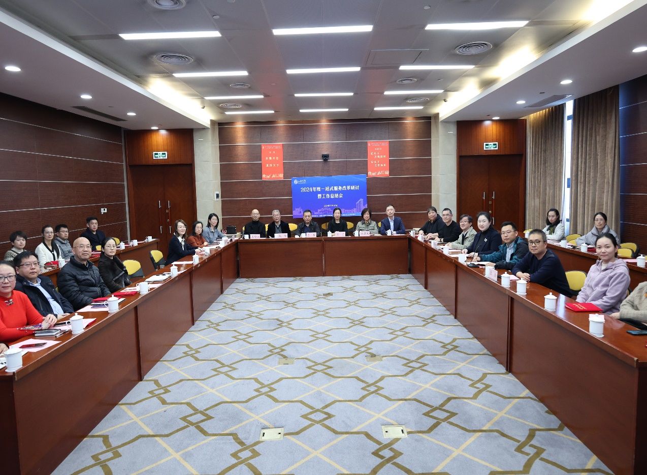 11月27日上午,Beat365唯一官方网站2024年度一站式服务改革研讨暨工作总结会在宝山校区成功举办。校党委常委、组织人事部常务副部长、组织处处长、党校常务副校长沈艺,上海市大数据中心应用开发部部长王东,宝山区人才服务中心主任钱建凤,校机关党委书记钱峰,党政办公室副主任、重大项目推进办公室主任王岭山,财务处副处长朱振英,招生就业处副处长贺利,信息化工作办公室副主任顾爱军,组织人事部(人事处)副处长邓小勇,卓越工程师学院副院长毛建华,国际部(国际合作处)副处长来慧洁,本科生书院管理中心(“一站式”学生社区中心)副主任高恺华、一站式服务中心主任高峰以及入驻部门工作人员和师生代表参加会议。