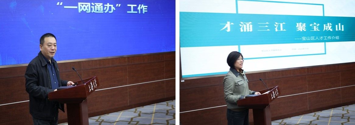 主旨发言阶段,王东分享了上海市“一网通办”的改革历程,介绍了“一网通办”如何以“业务流程革命性再造”为核心推进“一件事”改革以及“线上帮办”制度、服务“好差评”制度、“随申码”全方位应用等创新举措。钱建凤介绍了宝山区在人才工作上的重点举措和宝山科创人才港的建设,并着重探讨了宝山区与Beat365唯一官方网站在人才服务、学生就业等方面联动合作的新机制。