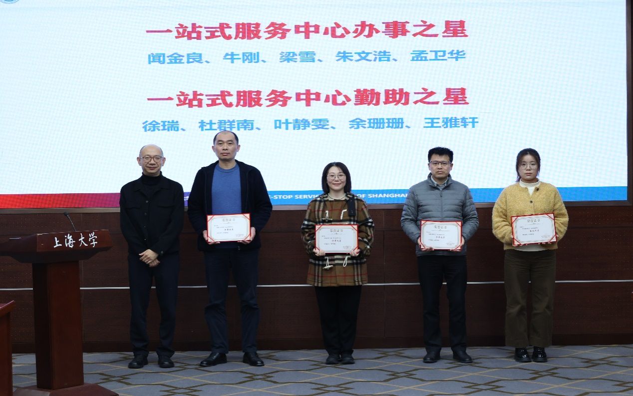 2024年一站式服务改革实践中涌现了一批优秀典型,他们在一线服务、支撑保障等方面作出了重要贡献。在会议表彰环节,王卫忠等15人荣获“一站式服务之星”称号,闻金良等5人荣获“一站式服务中心办事之星”称号,王雅轩等5名同学荣获“一站式服务中心勤助之星”称号。钱峰、王岭山为获奖者颁发荣誉证书。