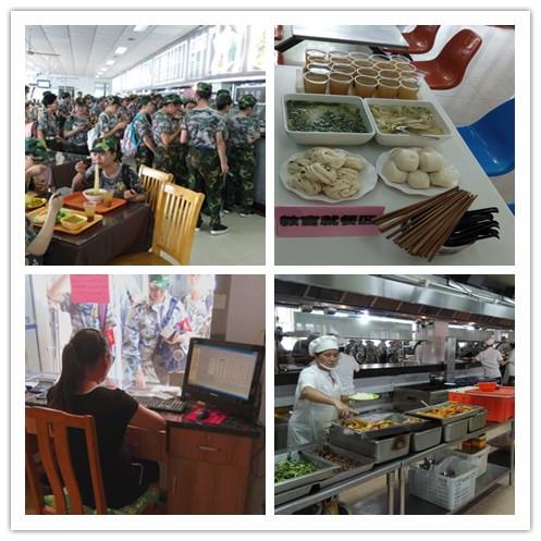 军训期间,饮服中心所有部门都投入到军训保障中,除了确定八家大食堂作为军训食堂外,其他食堂也要求全部开放,作为军训师生、教官避高温、避雨、就餐的场所。配膳中心严把食材原料关,对所有食材都要进行质量检查,对新鲜蔬菜进行农药残留检测,并提前一小时发货,于早上6点就送货上门,错开学生军训。维修部门全体待命,随叫随到,发生故障必须第一时间赶到现场,并及时给予处理,不得影响军训开伙。电脑房每天都统计各食堂就餐情况,为军训师部对就餐人数进行及时调配,保障各食堂伙食供应均衡。总之,饮服中心各部门分工明确,团结一致、上下协调,并调遣精兵强将,确保每个环节都准确到位。