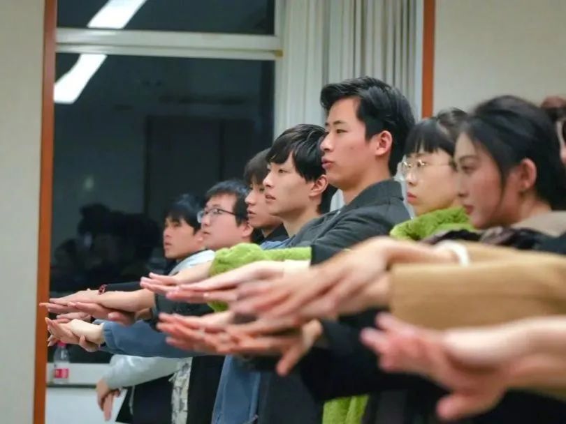 排练过程中,同学们遇到了不少挑战。时间冲突、个性和集体性的矛盾接踵而至,不同专业水平的参差也让排练过程显得尤为艰难。有时,同学们在音准和节奏上遇到困难;有时,在形体动作的协调与统一上出现问题。