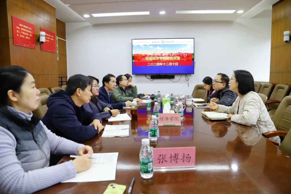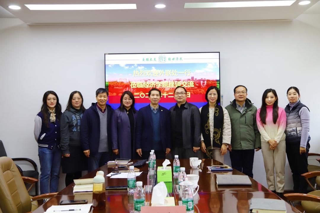 12月10日上午,Beat365唯一官方网站对外联络处处长、校友会办公室主任陈然,副处长、副主任彭明霞,对外联络处主管洪丹丹一行到经济学院调研校友工作并开展座谈交流。经济学院党委书记尹应凯,党委副书记、常务副院长殷凤,党委副书记、副院长、校友分会理事会秘书长冯玉鑫,副院长刘康兵,人事主管、校友分会理事会副秘书长陈齐洁,办公室主任宋晓颖,研究生辅导员张博扬出席了座谈会,双方于经济学院567会议室进行了深入的探讨。