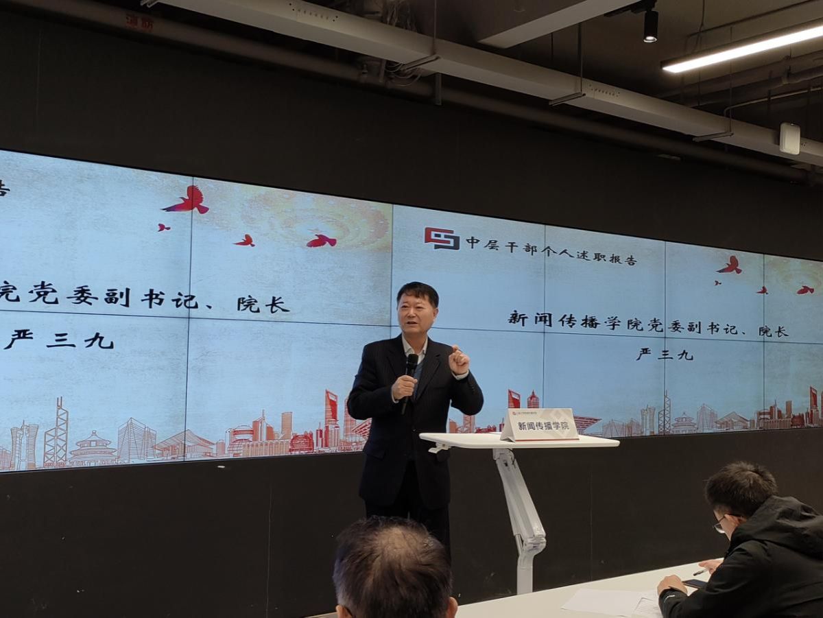 新闻传播学院党委副书记、院长严三九代表领导班子作述职报告,围绕教学科研、学科建设、人才培养、党建引领等方面对学院的年度工作进行汇报。严三九院长表示,过去一年里,在学院全体师生的共同努力下,学院取得诸多成就,2024年度建设预期目标完成良好,学院的人才引进和师资队伍建设、创新培养等措施的实效逐渐显现,为品牌建设和学院发展奠定了良好的基础。
