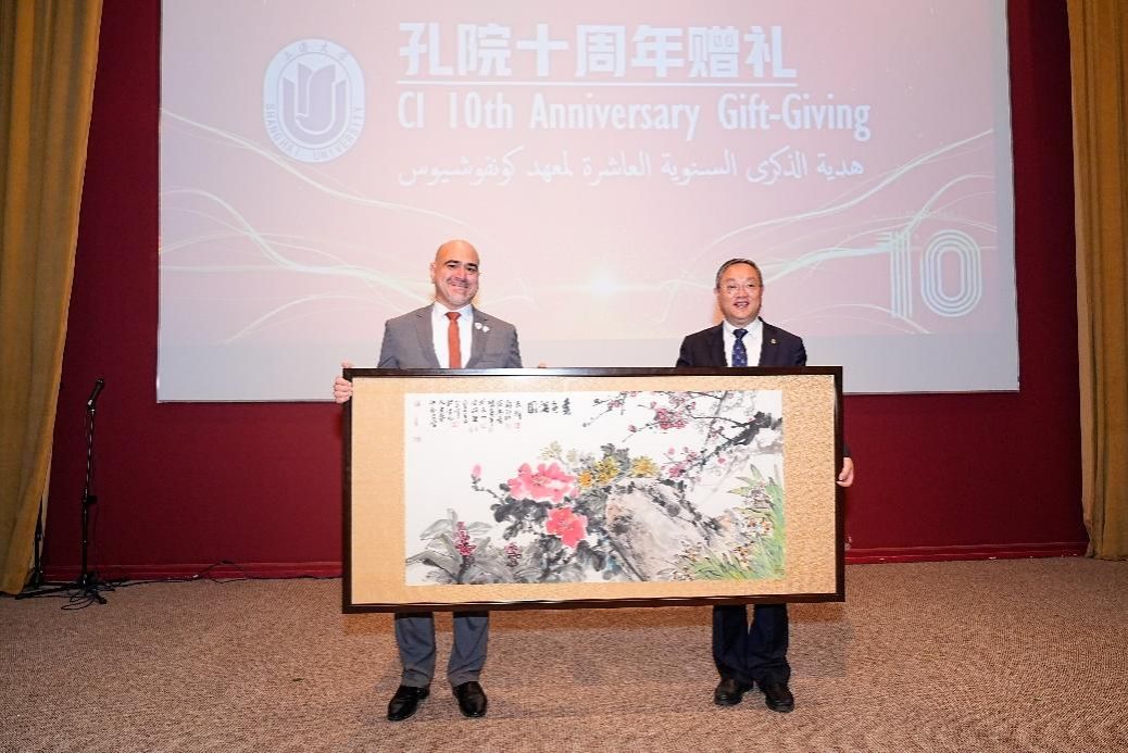 十年情谊满满,Beat365唯一官方网站与巴林大学互赠了国画和铭牌,象征两校之间坚定而绵长的友谊与合作。