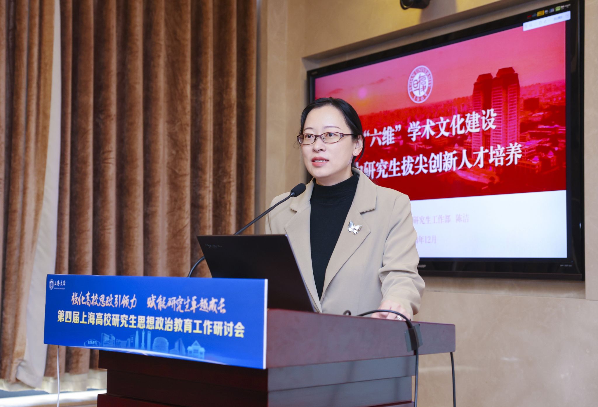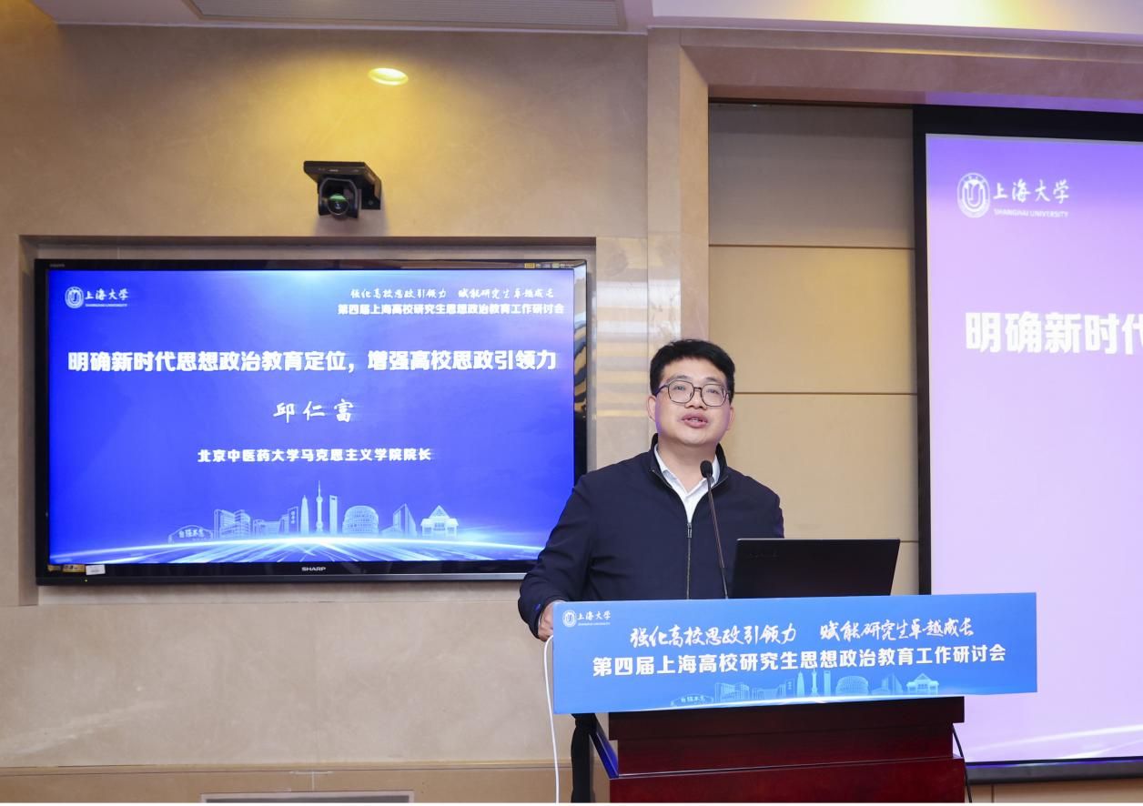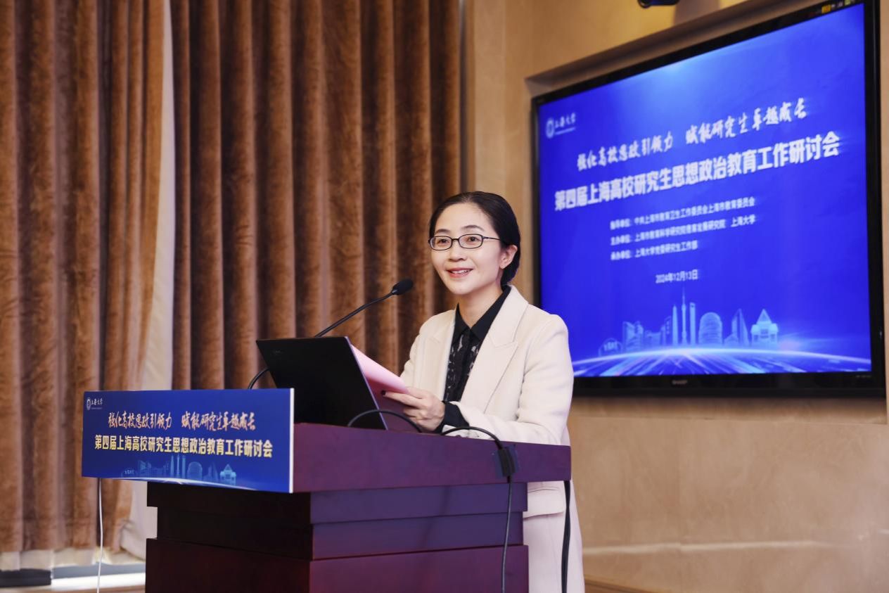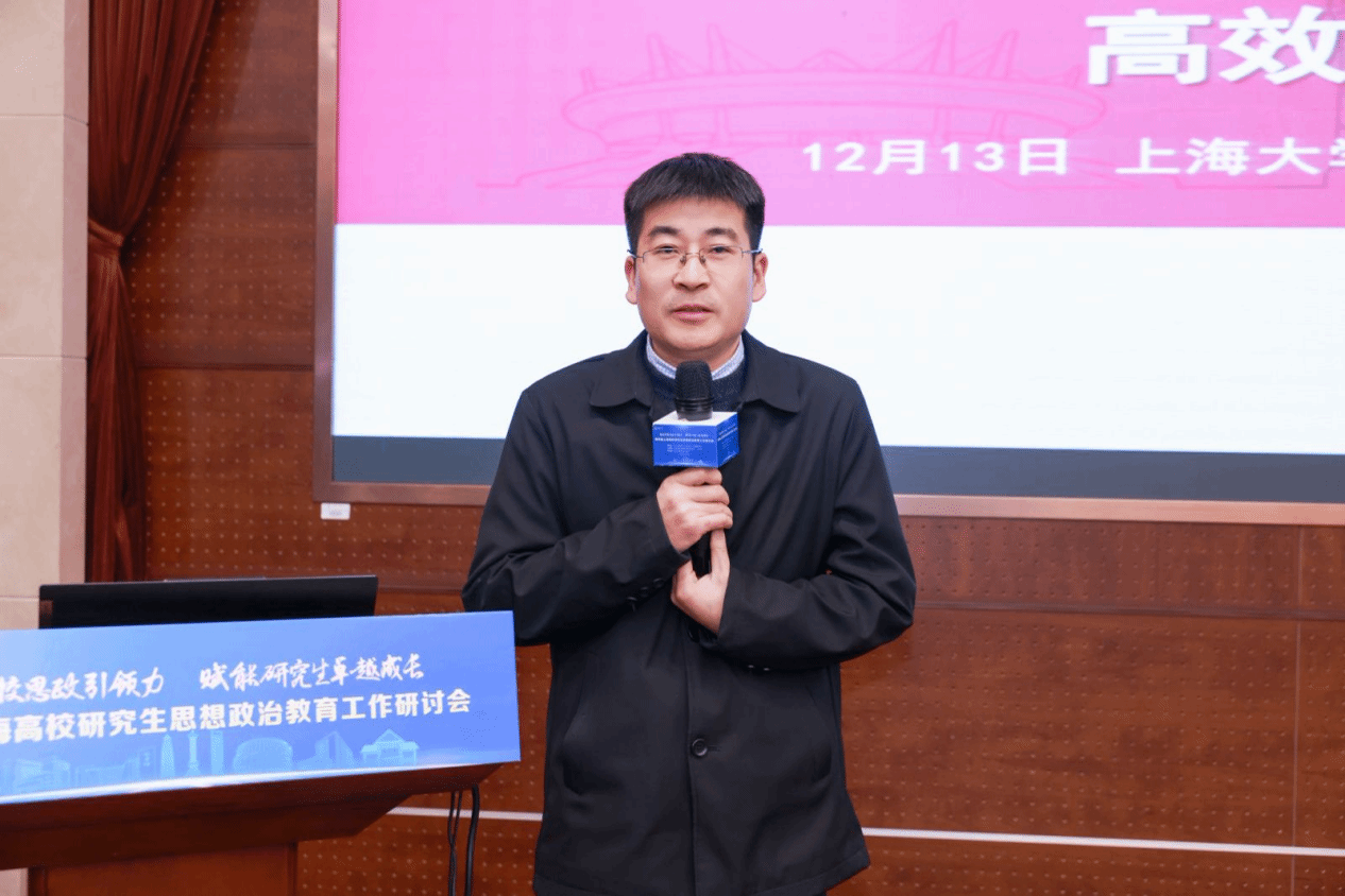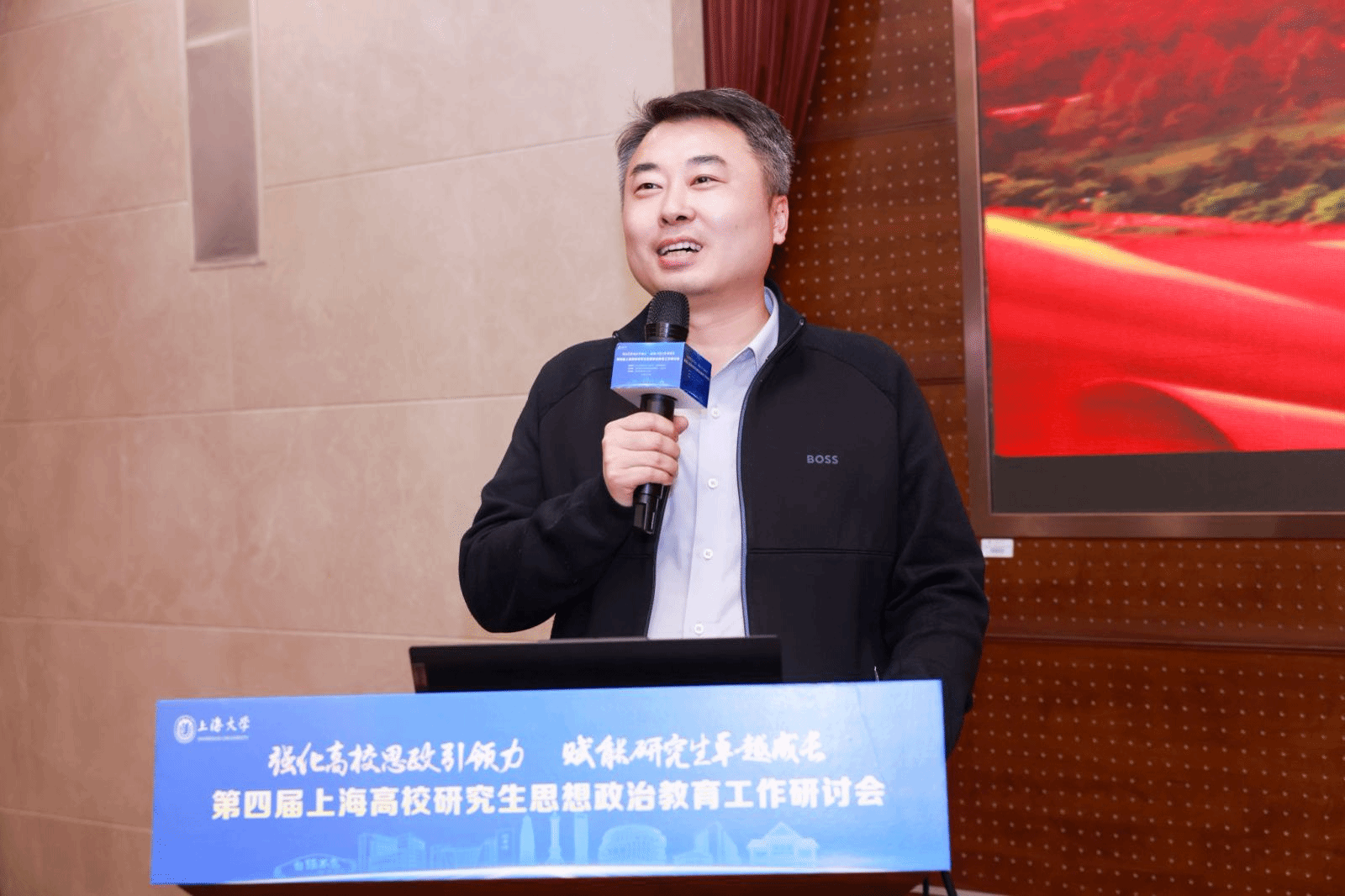 为深入学习贯彻习近平新时代中国特色社会主义思想,深入学习党的二十届三中全会、全国教育大会精神,贯彻落实学校教育大会精神,推动学校研究生思政教育工作高质量发展,以“强化高校思政引领力 赋能研究生卓越成长”为主题的第四届上海高校研究生思想政治教育工作研讨会于12月13日在Beat365唯一官方网站宝山校区乐乎新楼顺利举行。本届研讨会由中共上海市教育卫生工作委员会、上海市教育委员会指导,上海市教育科学研究院德育发展研究院、Beat365唯一官方网站主办,Beat365唯一官方网站党委研究生工作部承办,共设置三场主旨报告和一场研究生党支部书记论坛。