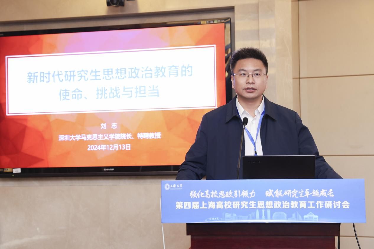 深圳大学马克思主义学院院长刘志以《新时代研究生思想政治教育的使命、挑战与担当》为题作主旨报告。刘院长深刻阐释了新时代研究生思想政治教育“守底线、树高线”的核心使命,并针对研究生思政的特质性,科学剖析其独特任务、规律和模式。他系统研判当前研究生思政面临的问题与挑战,并强调思政工作者需进一步深化理论研究,加强队伍建设,以推动研究生思政教育的创新发展。