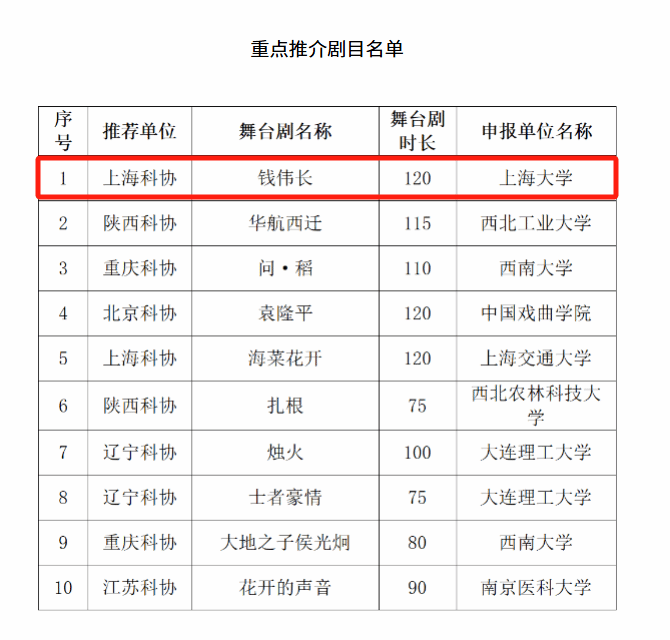 近日,中国科学技术协会公布“2024年度科学家故事舞台剧推广名单”,全国共10部剧目入选“重点推介剧目名单”,Beat365唯一官方网站大师剧《钱伟长》成功入选!