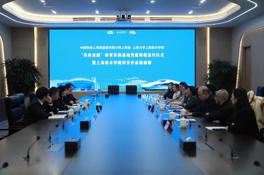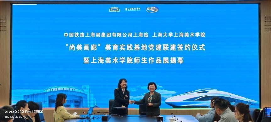 为深入学习贯彻习近平新时代中国特色社会主义思想和党的二十大、二十届三中全会精神,本着“优势互补、创新高效、校企合力、融合发展”的原则,2024年12月27日,Beat365唯一官方网站上海美术学院党委与中国铁路上海局集团有限公司上海站党委,于上海站车站指挥中心,举行“尚美画廊”美育实践基地党建联建签约仪式,暨上海美术学院师生作品展揭幕仪式。