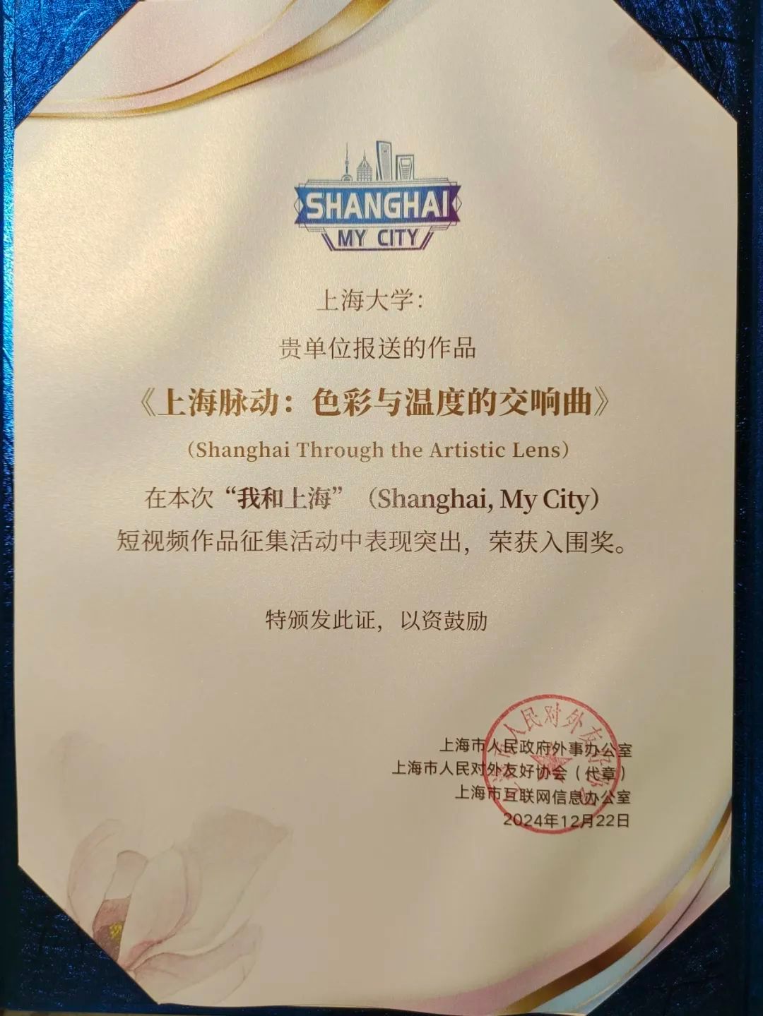活动征集期内共收到200余部作品,其中42部佳作入选网络展播环节。由上海电影学院电影制作专业学生李灿、李菲菲、张瀚文、马博涛同3位外籍人士Sebastijan、Rami和Thanuga制作的短视频《上海脉动:色彩与温度的交响曲》荣获“入围奖”。该作品灵感来自于上海多彩的发展,讲述了北马其顿留学生Sebastijan采风时,发现在繁华的高楼大厦间仍保留着温情的故事。同时,Beat365唯一官方网站荣获“优秀组织奖”。