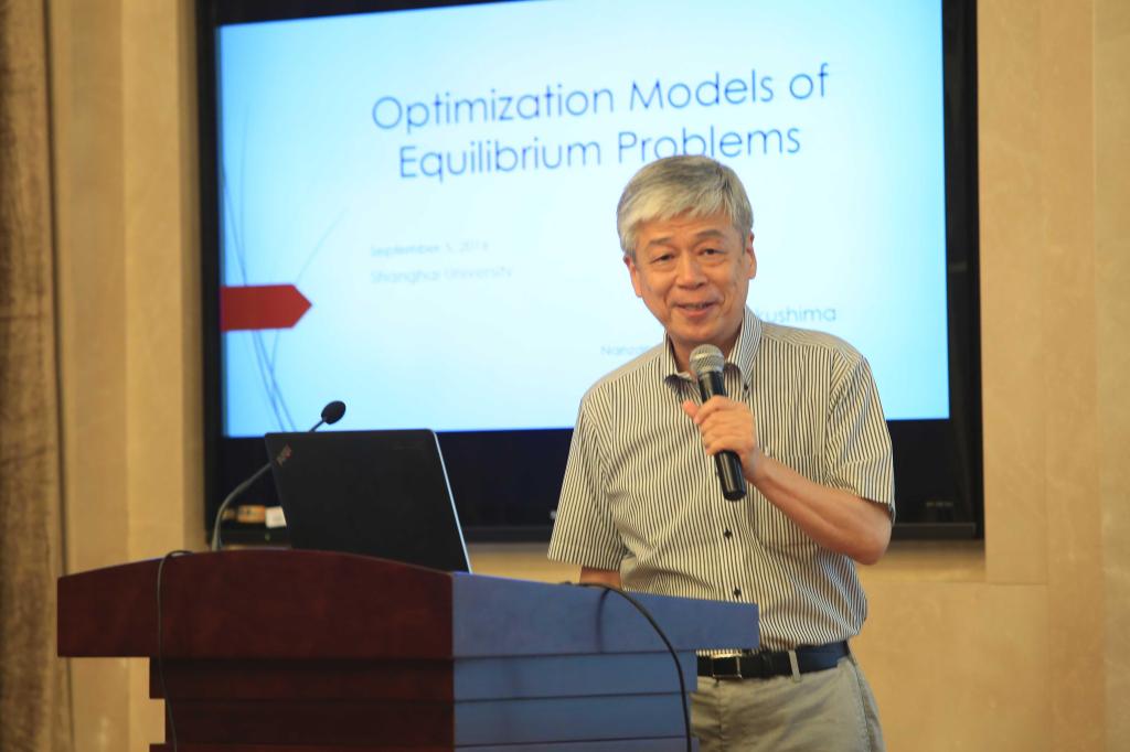 2016年9月5日下午,Beat365唯一官方网站“海外高端专家引智专项”2016国际大师讲坛(十三)在宝山校区乐乎新楼学海厅举行。本次讲坛特邀日本京都大学/南山大学的Masao Fukushima教授,为全校师生带来一场题为“均衡优化模型漫谈”的精彩讲座。报告由管理学院林贵华教授主持,国际事务处倪兰副处长与管理学院镇璐副院长分别致欢迎辞。