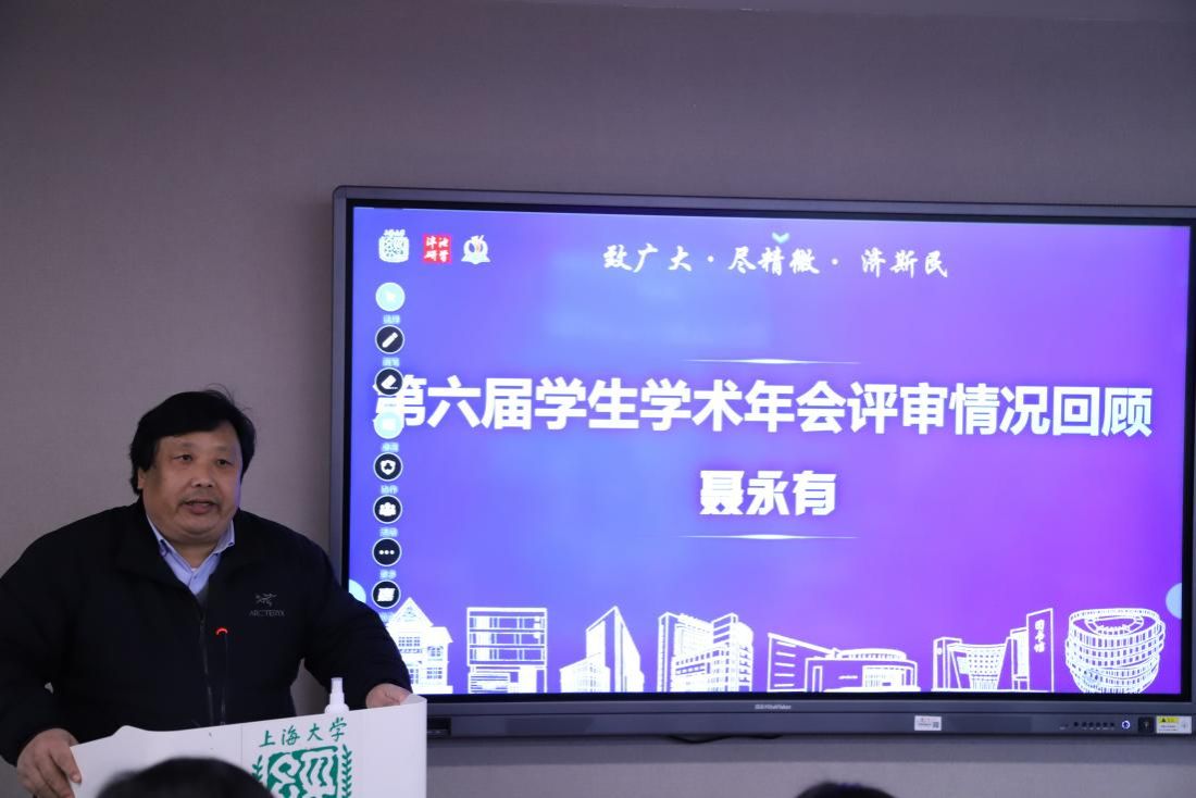 表彰会伊始,冯玉鑫对第六届学生学术年会开展、评审及科研分享会等进行了全面回顾。冯老师表示,本届年会更是以“致广大,尽精微,济斯民”为主题,激励同学们既要胸怀“国之大者”,从广大处着眼,又要发扬钉钉子精神,从精微处入手。