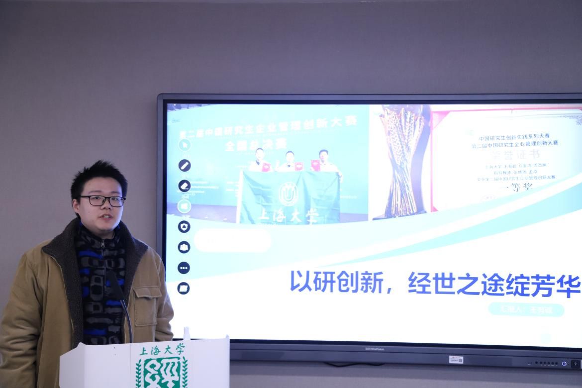 获奖代表分享过后,表彰会还设置“研途青年说”环节,为本年度中国研究生创新实践系列大赛的获奖同学代表提供展示舞台,中国研究生企业管理创新大赛一等奖获得者国旭、王有诚,“华为杯”中国研究生数学建模大赛一等奖获得者余继超相继分享他们的创新实践经历。