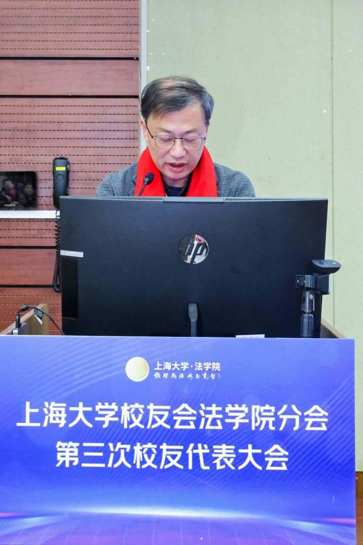 (法学院党委书记徐国明宣布新一届理事会选举结果)