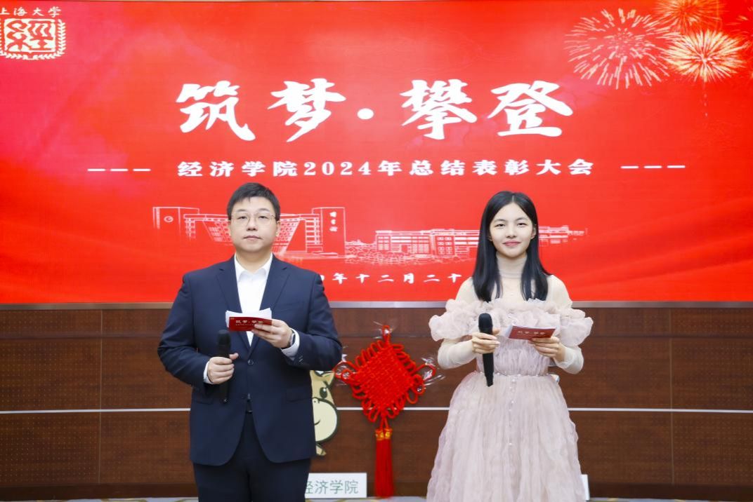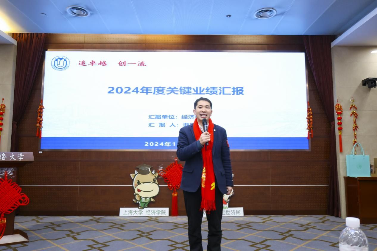 大会由经济学院金融系青年教师贺臻和经济学院2023级本科生倪韵菲联袂主持。在经济学院党委书记尹应凯对学院2024年的工作回顾中,大会正式拉开帷幕。尹应凯对学院过去一年在学科建设、人才培养、科学研究等领域取得的成就和面对的挑战进行了全面而深刻的总结。展望2025年,经院师生凝心聚力共携手,提质攀登新征程。