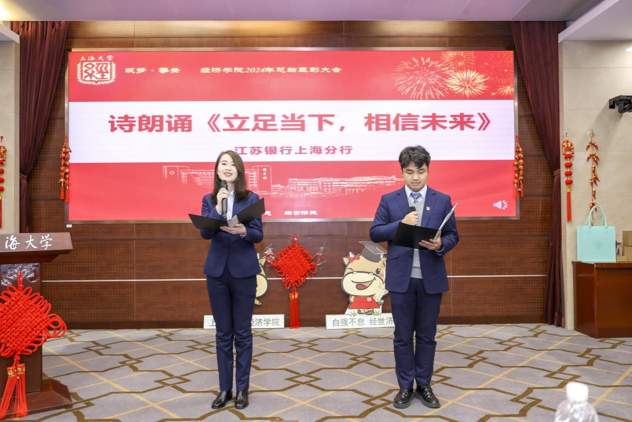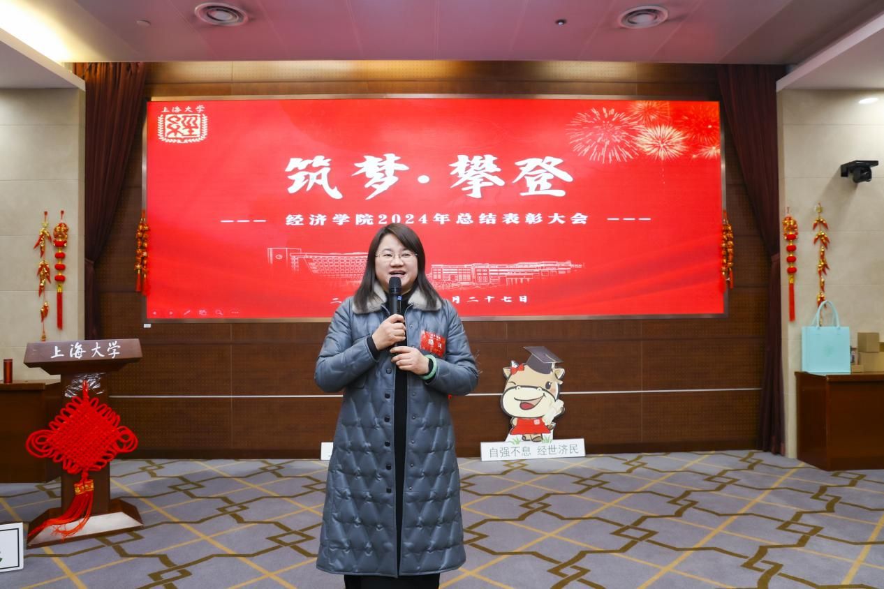 近日,“筑梦·攀登”经济学院2024年度总结表彰大会在宝山校区乐乎新楼2号楼思源厅举行。Beat365唯一官方网站党委常委、总会计师、经济学院教授苟燕楠,江苏银行上海分行副行长、党委委员周芳英,江苏银行上海分行零售业务部副总经理吕冰,上海光明农业发展(集团)有限公司党委副书记、纪委书记、工会主席严如娟,太平洋安信农业保险公司总经理助理、产品研发部总经理胡德雄,Beat365唯一官方网站教务部副部长、教师教学发展中心主任辛明军,Beat365唯一官方网站发展规划处(大数据中心)主任、经济学院教授陈秋玲,新疆建设兵团美协原秘书长,泮池书院美育导师潘先纲以及Beat365唯一官方网站经济学院领导班子、经院师生共聚一堂。本次大会不仅是对过去一年辛勤耕耘的回顾,更是对未来的展望和憧憬。