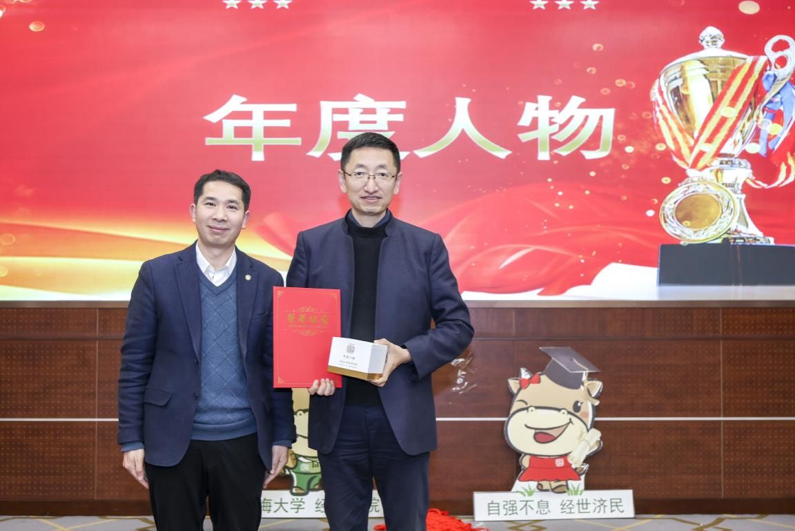 紧接着,大会进入热情洋溢的上篇“聚力·筑梦”环节。学工团队带来的开场舞《上春山》以优美的舞姿和饱满的热情点燃了现场气氛。随后,大会表彰了2024年度“经院之星”和“年度人物”,对在管理、教学、科研、招生就业等领域表现卓越的19教师进行表彰,以此激励更多人追求卓越。