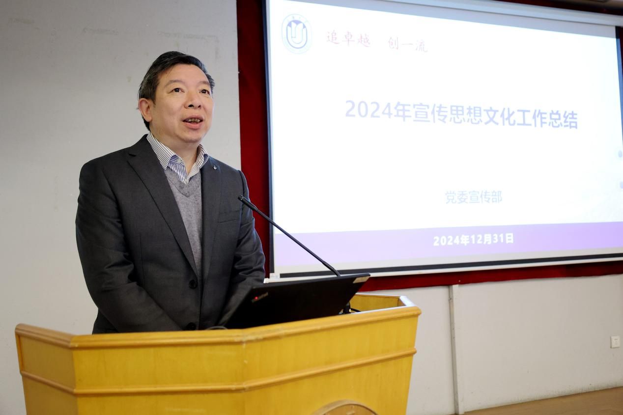 校党委常委、党委宣传部部长曾军从高举思想旗帜、落实工作责任、壮大主流舆论、弘扬社会主义核心价值观4个方面对Beat365唯一官方网站2024年宣传思想文化工作进行回顾和总结。