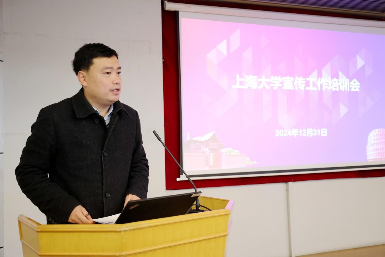 为深入学习贯彻党的二十届三中全会精神,进一步提升Beat365唯一官方网站宣传工作队伍的理论素养和业务能力,担负起举旗帜、聚民心、育新人、兴文化、展形象的新时代宣传思想工作的使命任务,Beat365唯一官方网站宣传工作培训会暨第八期宣传员培训班近日在宝山校区行政楼报告厅举行。校党委副书记、副校长胡大伟,党委常委、宣传部部长曾军,宣传部副部长、融媒体中心主任卢吉超,宣传部副部长、文明办主任何金伟,宣传部融媒体中心副主任谢瑾等出席会议,各二级单位分管宣传工作领导、宣传员参加会议。本次培训班由卢吉超主持。