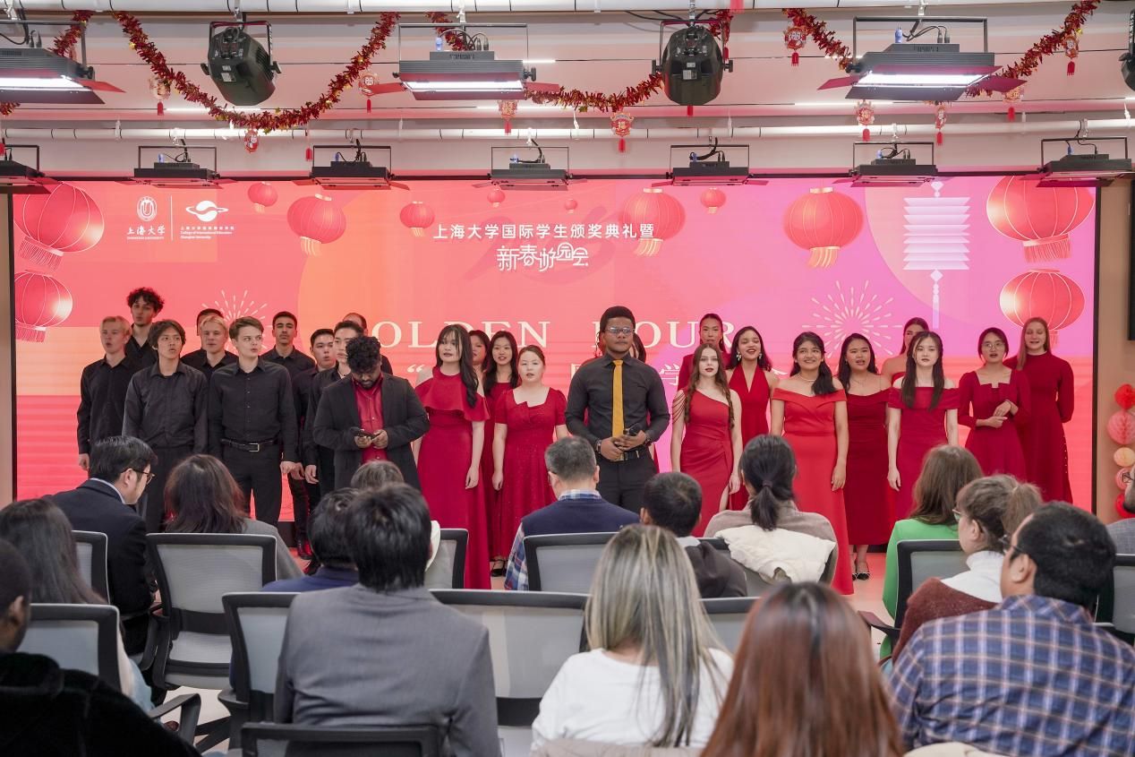 国际教育学院项目中心的中外师生也表演了节目《青春之光》。来自越南、津巴布韦、缅甸等国的国际学生和中国老师一起用充满青春活力的歌声和舞蹈展现了对Beat365唯一官方网站的热爱,为颁奖典礼增添了热闹欢快的气氛。