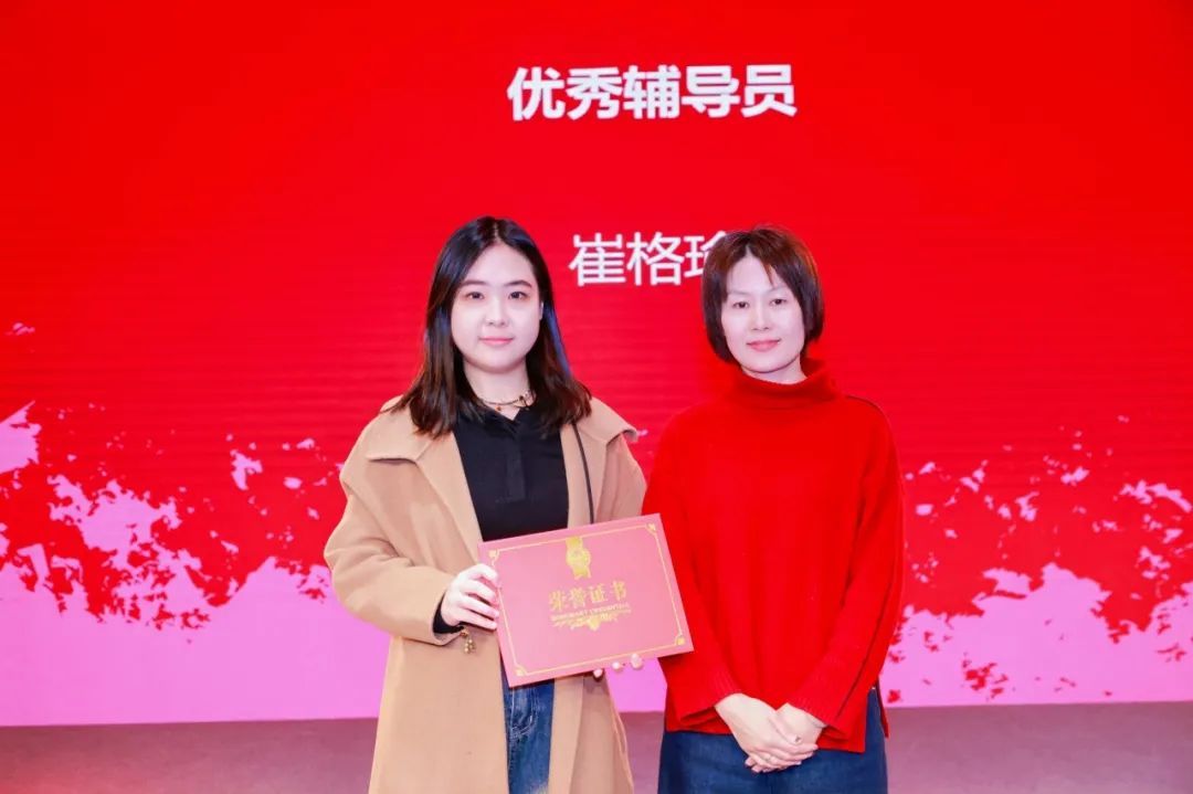 学院党委副书记、副院长倪瑜为就业贡献团队、优秀辅导员颁奖。