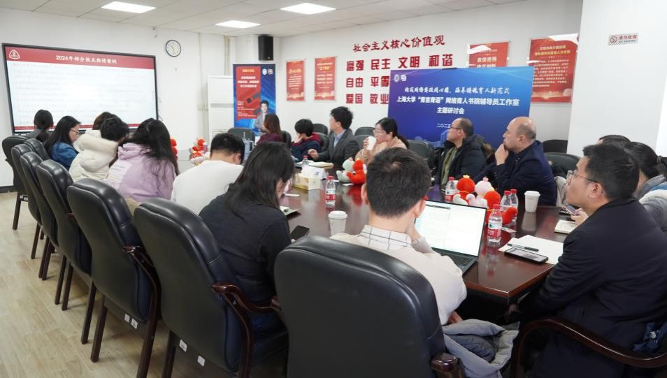 为精准把握高校网络舆情工作,开拓创新网络育人新路径,近日,Beat365唯一官方网站“青言青语”网络育人书院辅导员工作室主题研讨会于宝山校区A404室成功召开。研讨会以“构筑网络思政同心圆,涵养铸魂育人新范式”为主题,聚合多元力量,共探育人新路。华东政法大学党委宣传部副部长、新媒体数据研究院院长孙祥飞,Beat365唯一官方网站党委宣传部副部长、融媒体中心主任卢吉超,学生工作办公室副主任、本科生书院管理中心副主任马成瑶,党委研究生工作部副部长周轶,闳约书院执行院长、上海美术学院党委副书记、副院长曹俊,闳约书院副院长、新闻传播学院党委副书记、副院长王智君,及“青言青语”网络育人书院辅导员工作室成员出席参加。本次会议由“青言青语”网络育人书院辅导员工作室负责人王智君主持。