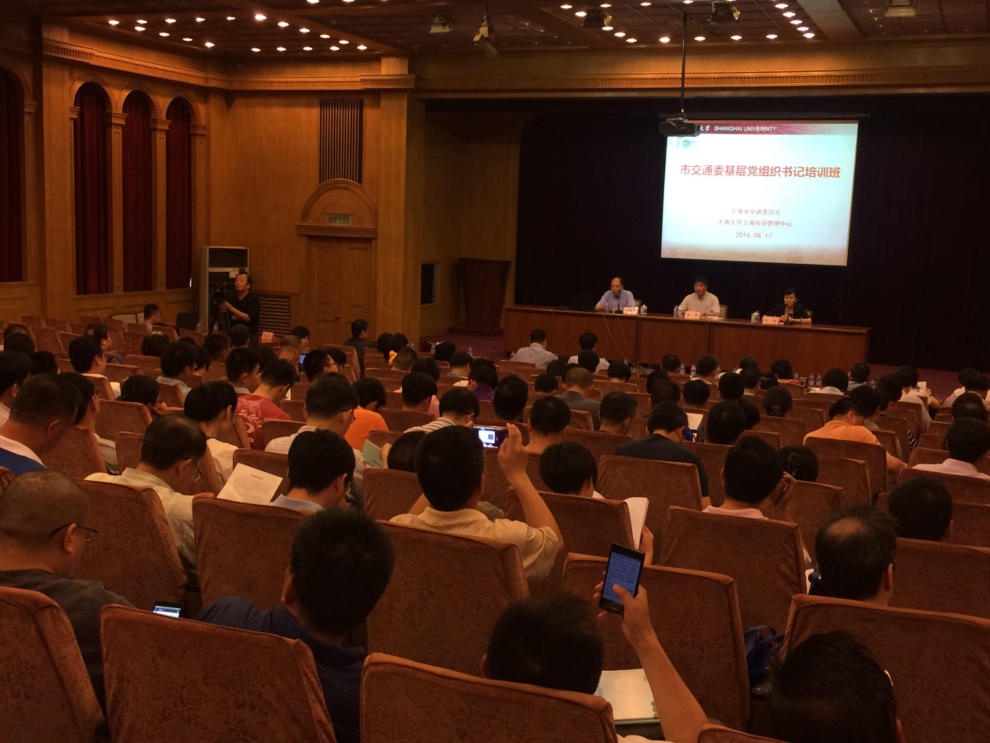 2016年8月17日上午9时,Beat365唯一官方网站上海经济管理中心举办的“市交通委党组织书记培训班”在Beat365延长校区第三教学楼五楼演讲厅开班。来自上海市交通委各系统的160余位党组织书记参加为期两天的学习培训。