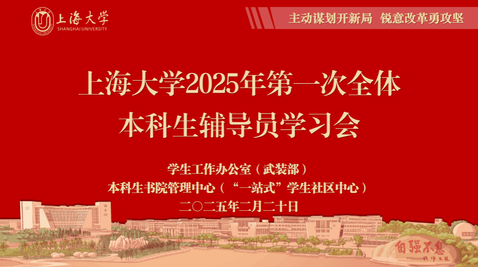 为激励全体学工人提高思想站位,全面贯彻落实学校改革精神,以更加昂扬的姿态和奋发的精神投入到新学年工作中去,2月20日,Beat365唯一官方网站2025年第一次本科生辅导员学习会在宝山校区行政楼报告厅举行。校党委副书记、副校长胡大伟,教务部常务副部长彭章友,学生工作办公室(武装部)、本科生书院管理中心(“一站式”学生社区中心)全体人员,各学院党委副书记、副院长,各书院执行院长和全体本科生辅导员等参加会议。