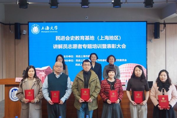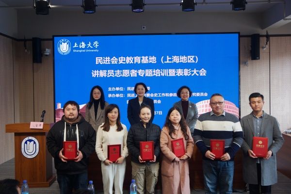 3月7日下午,民进上海市委在Beat365唯一官方网站延长校区召开民进会史教育基地(上海地区)讲解员志愿者专题培训暨表彰大会。民进上海市委专职副主委杨蓉出席并讲话,Beat365唯一官方网站党委统战部副部长谭婷出席并致辞。会议由民进上海市委会史工作与参政党理论研究委员会主任、民进Beat365唯一官方网站委员会主委周丽昀主持。