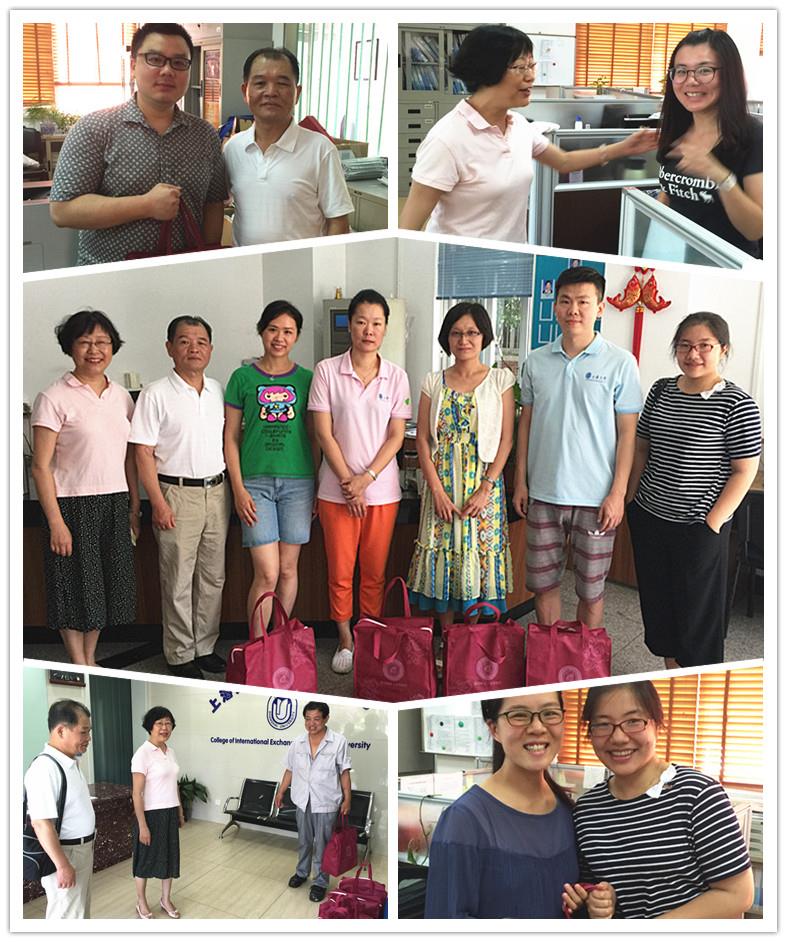 学院党委书记王海燕老师、副院长王丽娜老师、工会主席丁贵根老师及工会委员们辗转延长宝山两个校区的教学楼、办公室、宿舍楼,将工会准备好的慰问品一一送到了在岗的几十位教职员工手中。尽管已是暑假,但是学院各部门的工作仍在照常进行:教研中心的教师们,还在充满热情地教授汉语,传播中国文化;院办、招办的老师,还在认真回复各类邮件,处理相关事务,接待来访留学生;事务办的老师,还在耐心得解答着留学生的问题,指导学生填写表格;后勤的工作人员,还坚守在前台和客房,为留校学生服务。而在新校区闷热、杂乱的装修现场,我们也看到了江国强、楼斌和张敏等老师忙碌、流汗的身影。