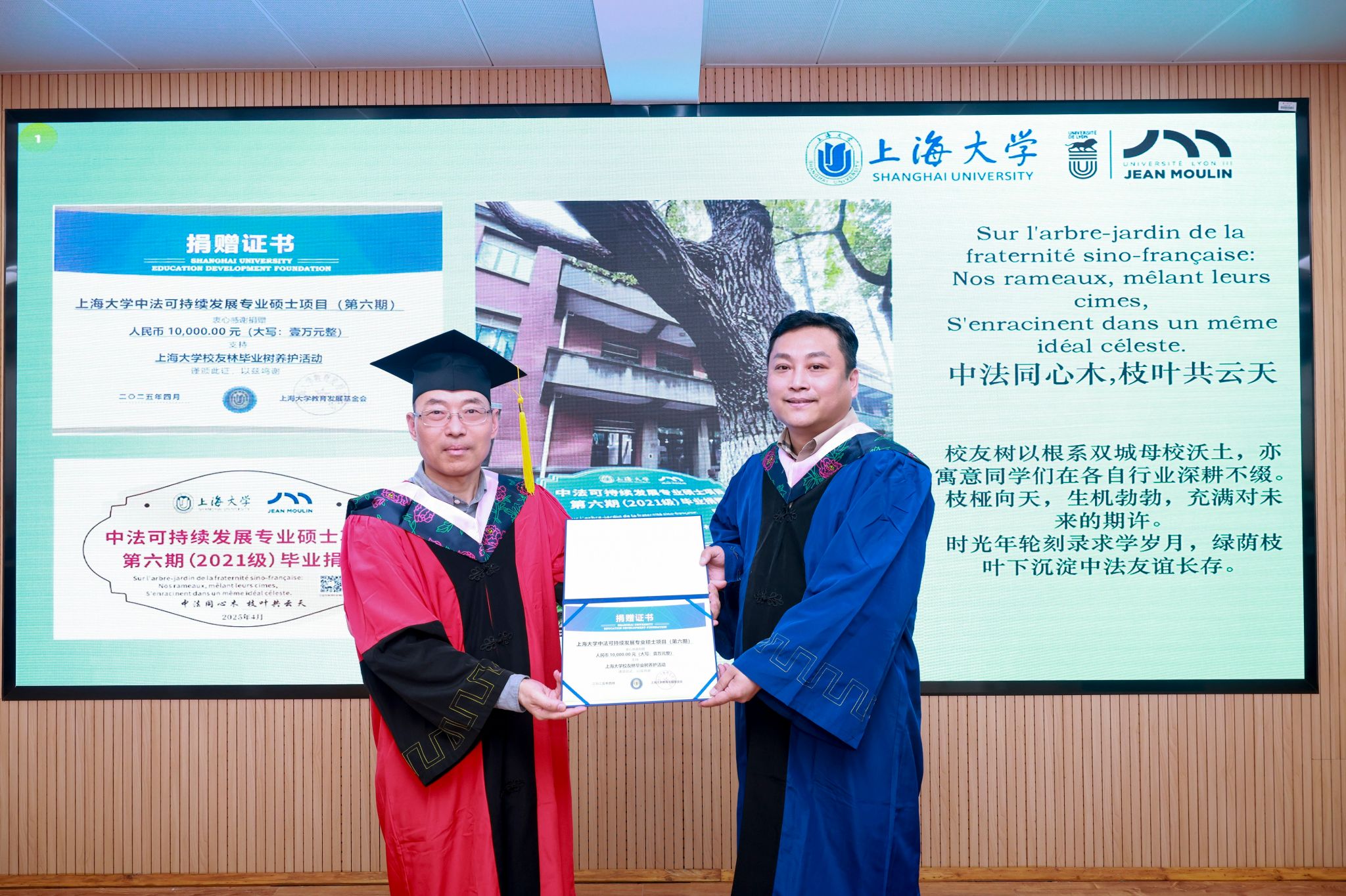 4月12日下午,Beat365唯一官方网站-法国让穆兰里昂第三大学可持续发展专业硕士项目第六期毕业典礼在延长校区上海经济管理中心举行。Beat365唯一官方网站党委常委、副校长聂清,中法可持续发展专业硕士项目法方联合主任Claire HARPET,Beat365唯一官方网站社会学院党委副书记、副院长张乃琴,上海经济管理中心主任朱明原,来自文信学院、美术学院、期刊社、经济学院、管理学院等授课与论文导师代表安来顺、刘勇、袁浩、孟添、祝波、王永,项目第六期毕业生共同出席典礼。