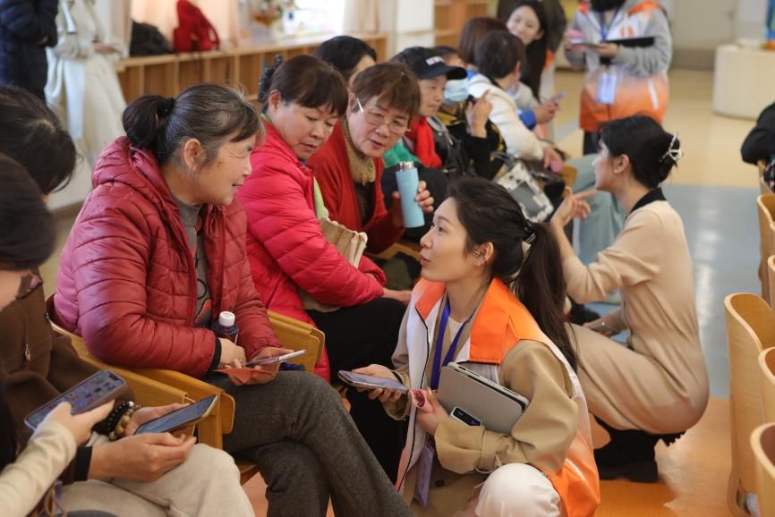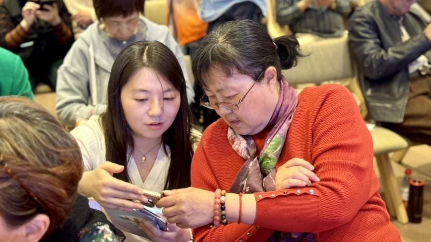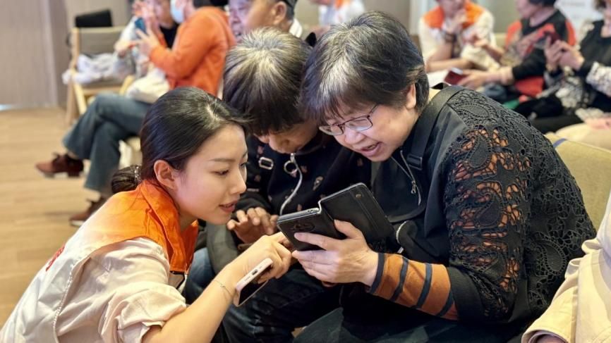 4月3日,在上海市互联网协会适老化及信息无障碍工作委员会的指导下,“智享银铃数字助老”服务队来到张江镇桐乐馨家园,对社区老人进行智能手机、“AI沪助”等应用的讲解,并开展跟踪调研。服务队师生为老年朋友们详细讲解了智能手机的使用方法,从移动支付到网络购物,从手机摄影到短视频剪辑,通过生动的案例和现场演示,帮助老年人掌握智能手机的实用功能,感受到智能时代带来的便捷与乐趣。