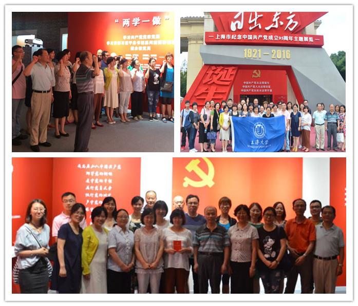 在展厅中,大家仿佛置身于时空交错的历史长廊,沿着先辈的足迹,从昔日的革命场所,逐步走向当今的繁荣都市。大家时而驻足学习,时而讨论交流,完全沉浸在这特殊的环境中。期间,全体党员还在学院党外教工的注目下,由学院党龄最长的江国强老师的领誓,面对鲜红的党旗,庄严地举起右拳,重温了入党誓言:在追求民族独立解放的征程中,昔日的共产党员们不负历史的重托,履行了党员的职责;在民族复兴的筑梦路上,新时期的党员要结合“两学一做”的学习实践,牢记历史使命、勇于担当、爱岗敬业,在日常工作发挥积极的示范作用。