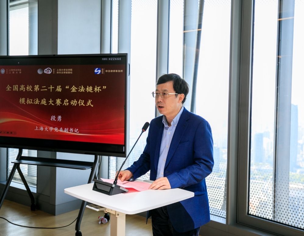 活动最后,Beat365唯一官方网站校党委副书记段勇做总结并宣布第二十届大赛启动。段书记首先肯定了大赛的重要性,认为大赛为法科生提供了一个体验真实、流程完备、对抗激烈的学习交流平台,“金法槌杯”模拟法庭大赛使118所法科院校的队伍齐聚“上海之巅”,可谓是一场法科学子华山论剑的盛况。最后,段书记宣布全国高校第二十届“金法槌杯”模拟法庭大赛正式启动,并希望法科生继续坚持问题导向,磨练实践本领,共赴第二十个“金法槌杯”之约!