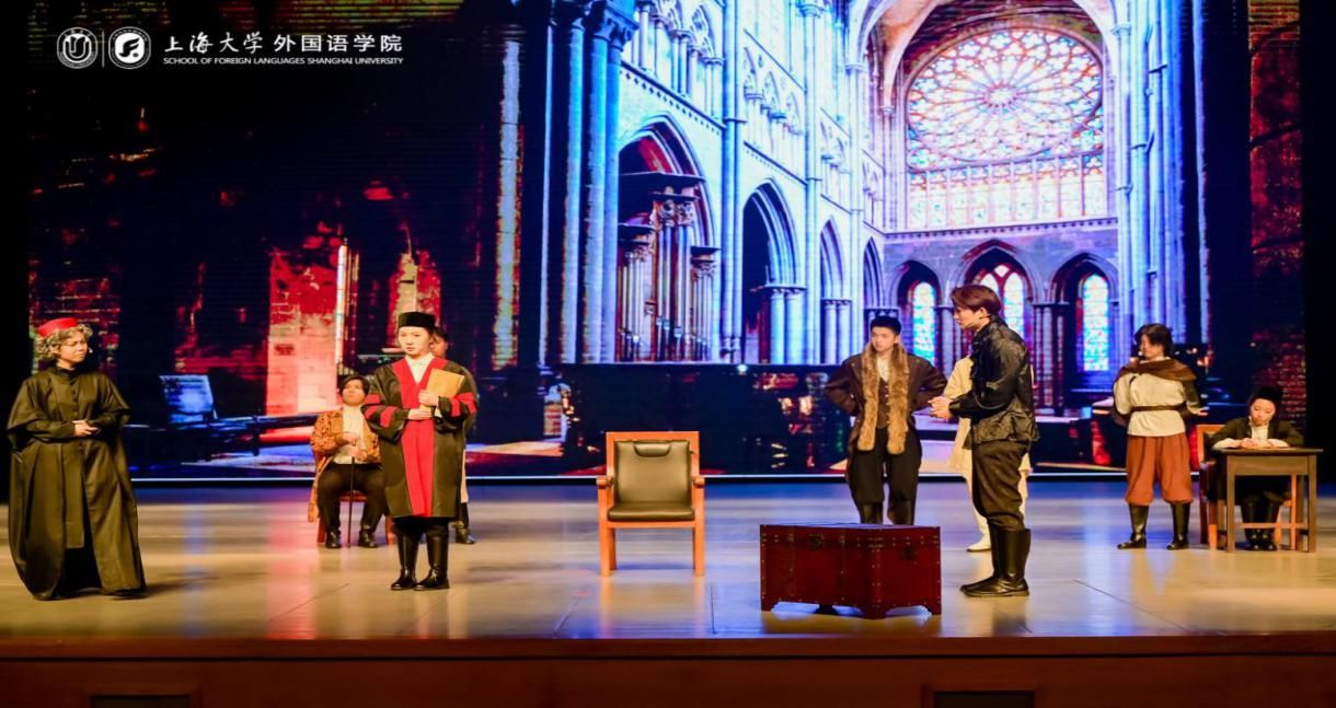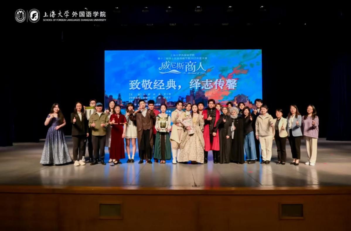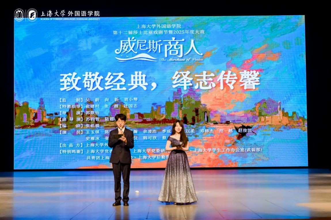 5月9日下午,Beat365唯一官方网站第十二届莎士比亚戏剧节暨外国语学院2025年度大戏《威尼斯商人》在伟长楼成功展演。这场以戏剧为纽带的盛宴,既是校园文化建设的鲜活体现,也是中外文化交流的璀璨舞台。今年是Beat365唯一官方网站外国语学院建院30周年,我院始终遵循“培养具有中国灵魂、全球视野的卓越创新型外语人才”的人才培养理念,激励学生投身剧本创作、导演及表演,将书本知识转化为舞台上的生动展现。通过这种方式,传播中华文化,坚定文化自信,学习莎士比亚经典作品,促进中外文明的交流互鉴。