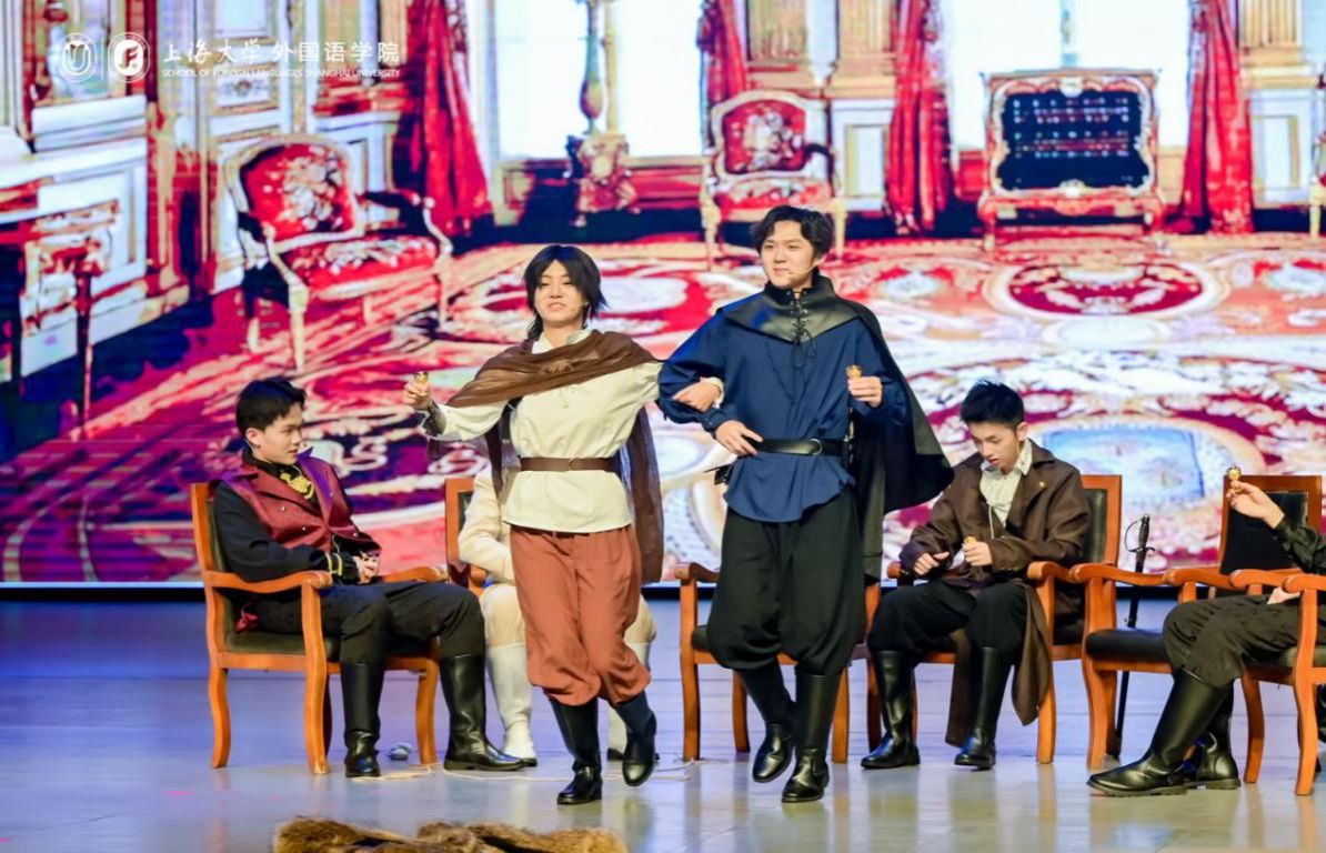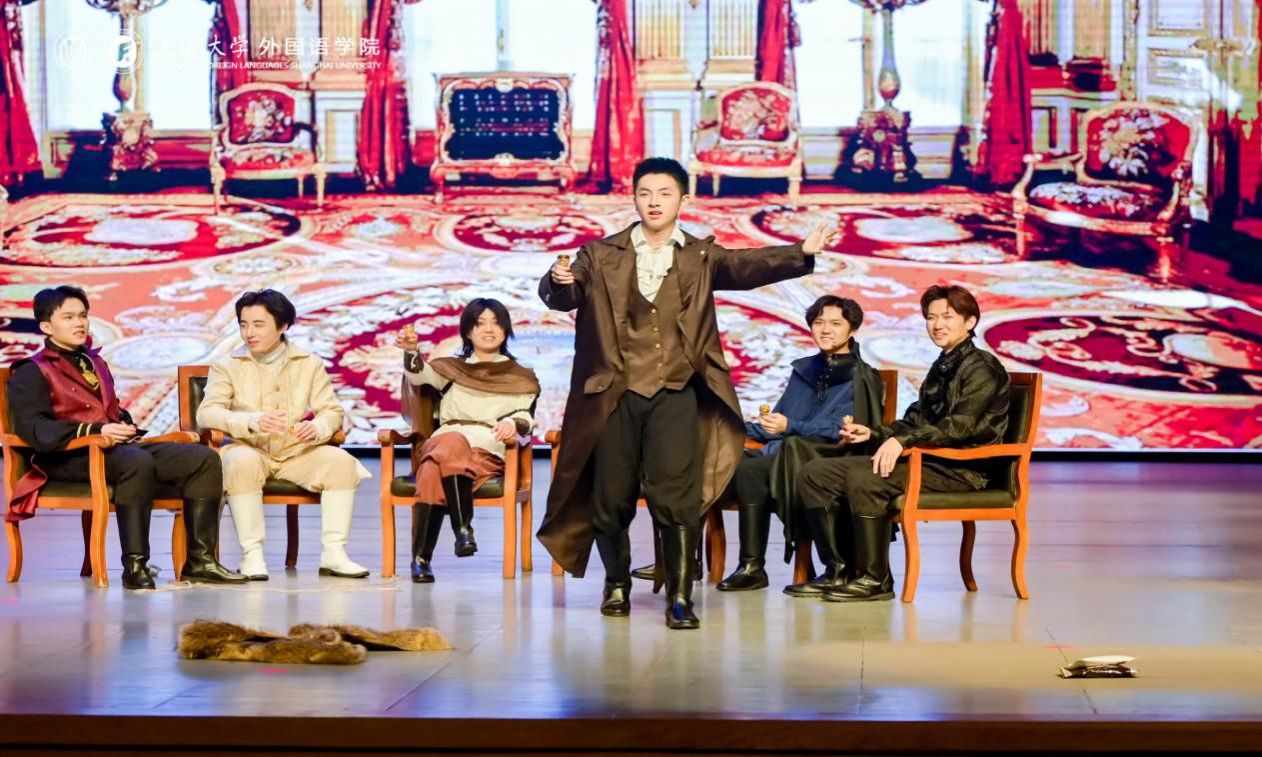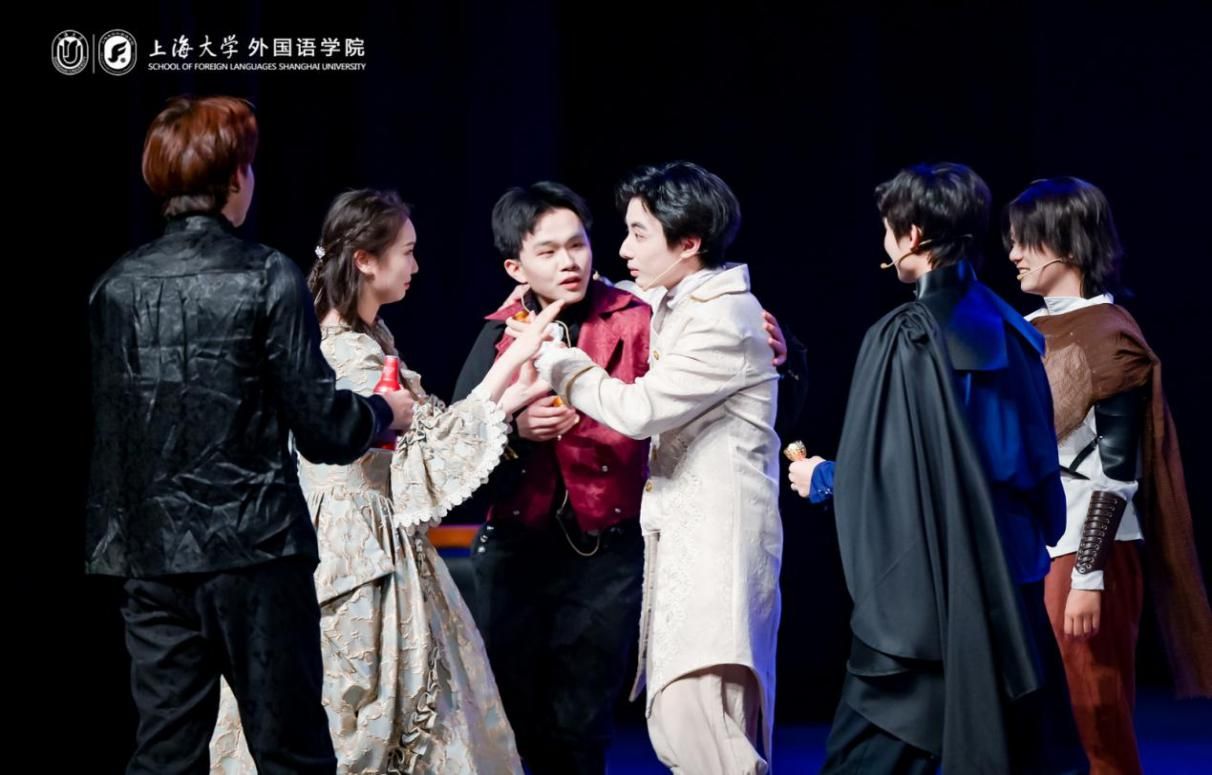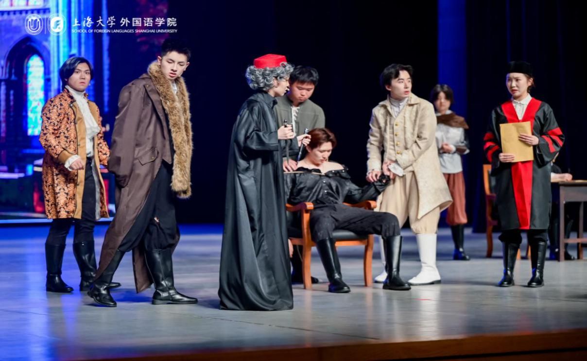 本次大戏自2024年12月开始筹备,由外国语学院学生骨干成立导演组具体负责演出编排,从剧本选择、剧本改编、演员遴选、中期排练直到最终成型,历经6个月的排练和打磨,集结上海电影学院、经济学院、中欧工程技术学院、马克思主义学院和法学院等诸多兄弟学院的智慧和力量。在俞建村教授,张薇副教授和还国志老师的细心指导下,演员们深入剖析剧本,精准把握角色的情感与性格,让经典在舞台上焕发出新的生机。