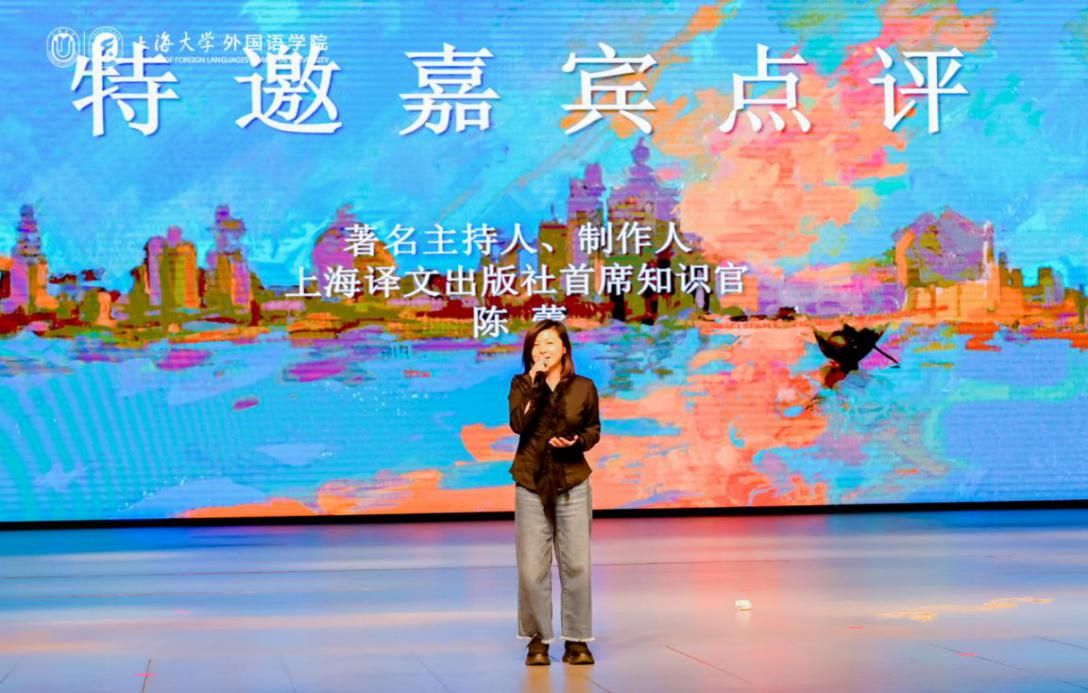 演出结束后,张薇老师上台点评。她提到演员们以出色的表演,生动演绎了莎士比亚原著的戏剧冲突,歌颂了人物之间的友谊和爱情,成功刻画与塑造了角色形象,用心用情地展现了一台精彩绝伦的戏剧表演。陈蕾女士作为特邀嘉宾上台点评,对演员们精湛的演技、剧本结构的严谨与逻辑性、情节张力的巧妙营造给予了高度肯定,鼓励同学们以戏剧为切入点,实现跨学科的学习与交流,共同推动中外文明互鉴。