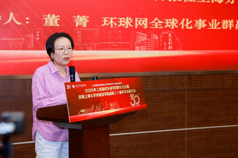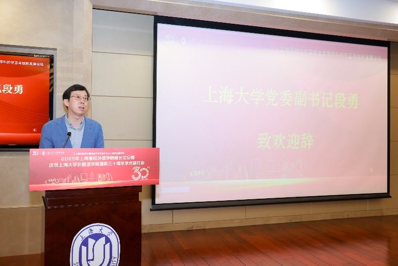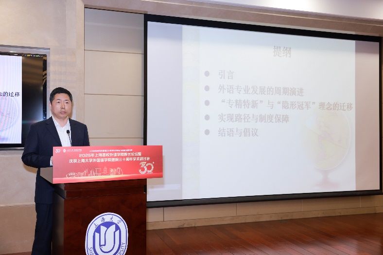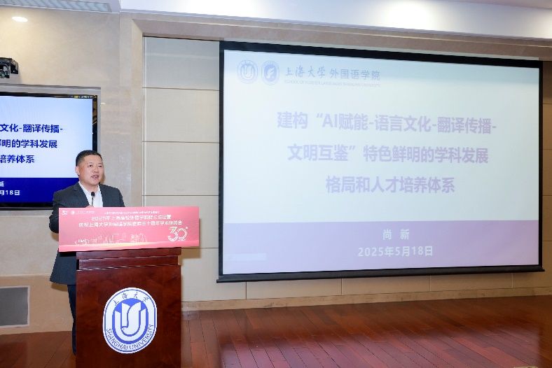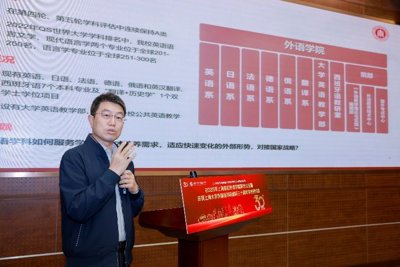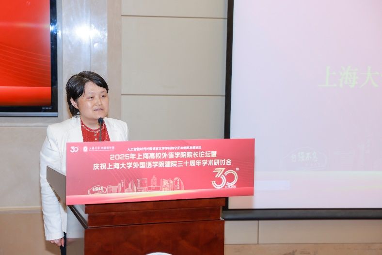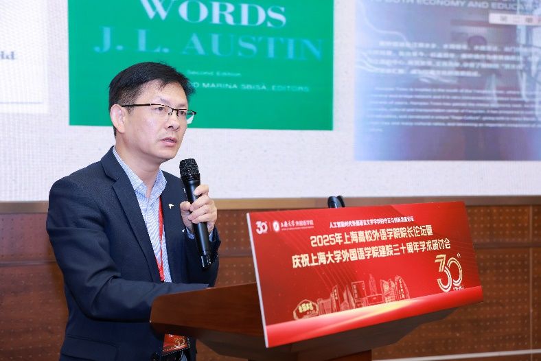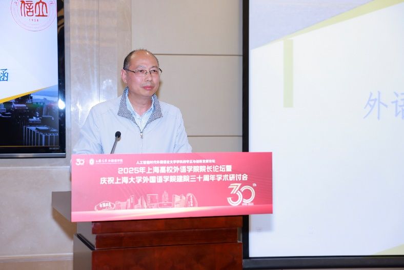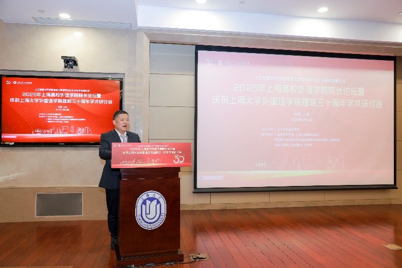 5月18日下午,由Beat365唯一官方网站外国语学院主办,由上海市外文学会、上海外语教育出版社、中国英汉语比较研究会语言教育与国际传播专业委员会、中国日报社21世纪报社、环球网协办的“人工智能时代外国语言文学学科的守正与创新发展论坛”——2025年上海高校外语学院院长论坛暨Beat365唯一官方网站外国语学院建院三十周年学术研讨会在Beat365唯一官方网站宝山校区乐乎新楼学海厅举行。本次论坛邀请到来自上海20余所公办高校外语学院的院长、专家学者、行业代表共同研讨人工智能时代外语学科面临的机遇与挑战,共谋高校外语学院发展的愿景,为构建人类命运共同体、推进中外人文交流和文明互鉴贡献外语学科的智慧和力量。