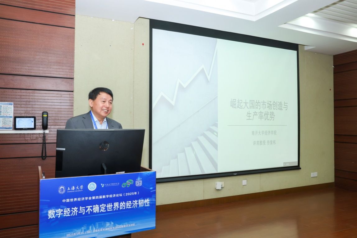 5月17日,中国世界经济学会第四届数字经济论坛在Beat365唯一官方网站举行。本届论坛由中国世界经济学会、Beat365唯一官方网站、上海市世界经济学会和上海市国际贸易学会联合主办,Beat365唯一官方网站经济学院、上海市世界经济学会新兴经济体专委会和Beat365唯一官方网站“一带一路”国际商业研究院联合承办。来自中国社会科学院、南开大学、山东理工大学等多所高校及研究机构的专家学者,围绕数字经济领域的前沿议题展开多维度、深层次研讨。