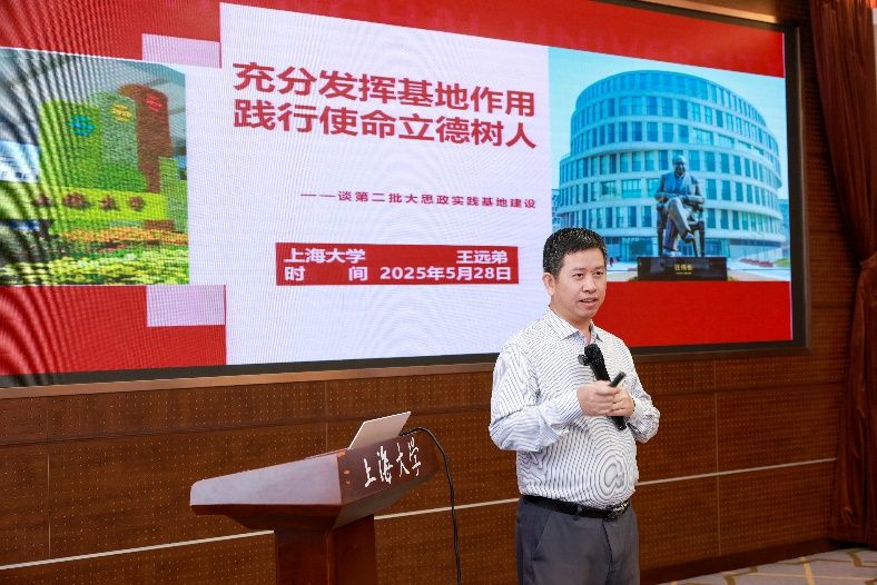图博档党委书记王远弟介绍了钱伟长图书馆入选为第二批上海“大思政课”实践基地的建设成果,展示了以科学家精神为核心的育人资源体系。王书记介绍到,馆内拥有钱伟长手稿、何尊拓片等丰富资源,表示后期将深化与各育人单位的协同合作。
