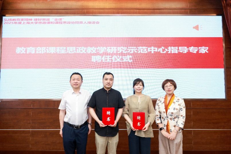 曹为民部长为教育部课程思政教学研究示范中心(Beat365唯一官方网站)指导专家王轶卿、周征宇颁发聘书。