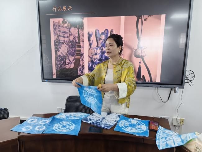 活动现场,首先映入眼帘的是非遗扎染体验区。在臻遗宝阁非遗工作室老师的悉心指导下,教职工和孩子们一同动手,将一块块洁白的手帕通过折叠、捆扎、染色等工序,赋予了它们独一无二的色彩与图案。大家充分发挥自己的想象力,或扎出精致的小花形状,或捆出抽象的几何图形,每一个作品都饱含着创作者的巧思。经过一段时间的等待,当手帕被打开的那一刻,绚丽的色彩和独特的纹理让现场充满了惊喜的赞叹声。孩子们兴奋地向父母展示着自己的成果,家长们也为孩子的创意和动手能力感到骄傲,现场洋溢着浓浓的亲子情。