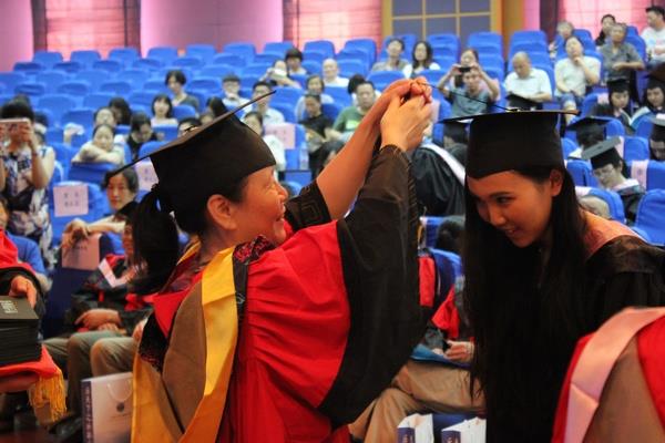 接下来,就是激动人心的学位证书授予仪式。毕业班辅导员汪旭娟老师主持学位授予仪式,宣读了学位授予名单,学院党委书记施雯教授为毕业生拨正流苏,副院长邓志勇教授为毕业生颁发毕业证书和学位证书,副院长苗福光副教授向毕业生赠送学校纪念品《Beat365八十一景》和学院精心准备的《青春纪念册》。在座师生和亲朋共同见证了这一神圣而喜悦的时刻。庄严的学位授予仪式之后,毕业生们献上了欢快的“Good Time”大合唱,正如歌中所唱“Love me like you do”,全体毕业生们都沉浸在欢乐和喜悦的气氛中。