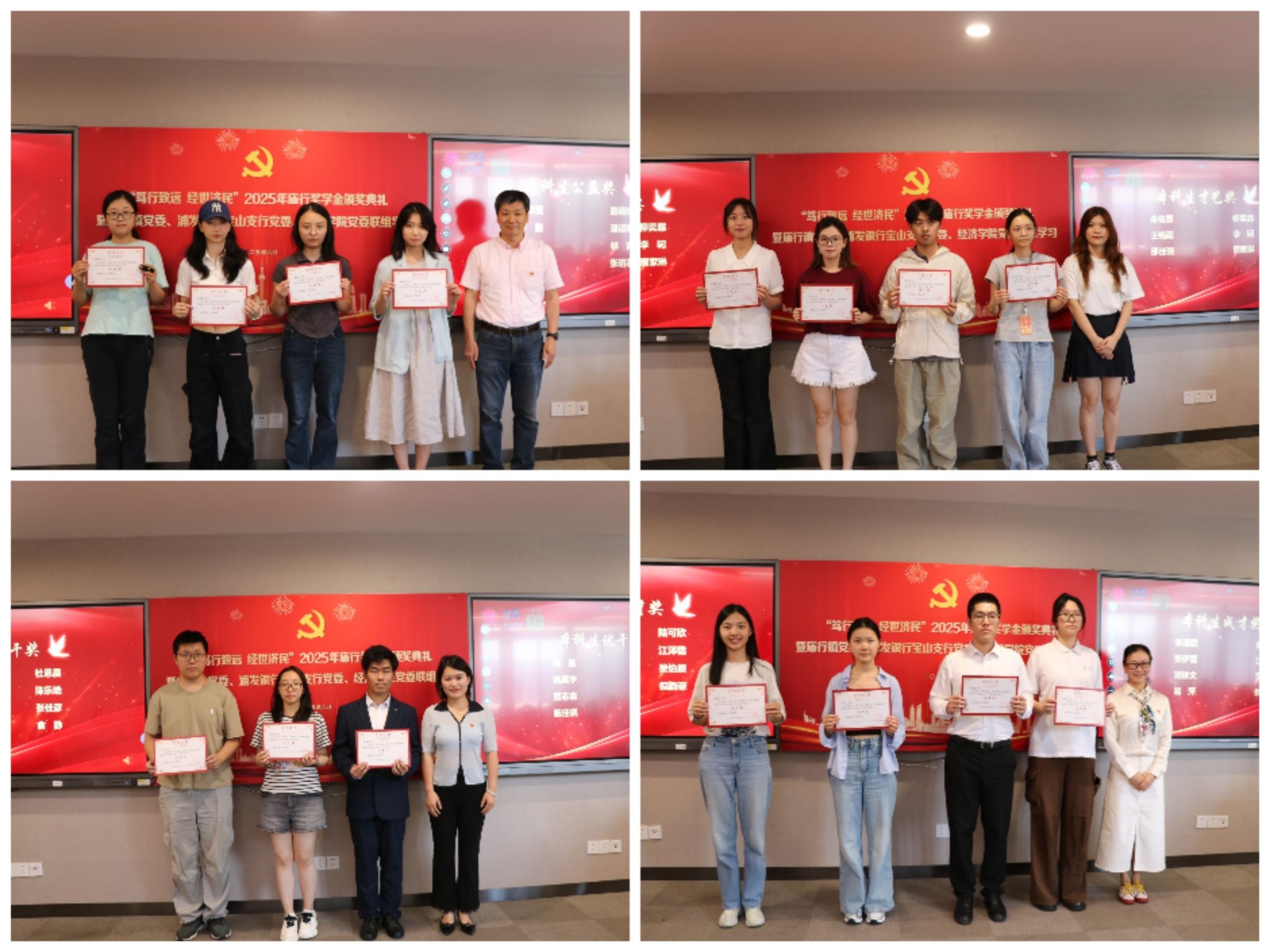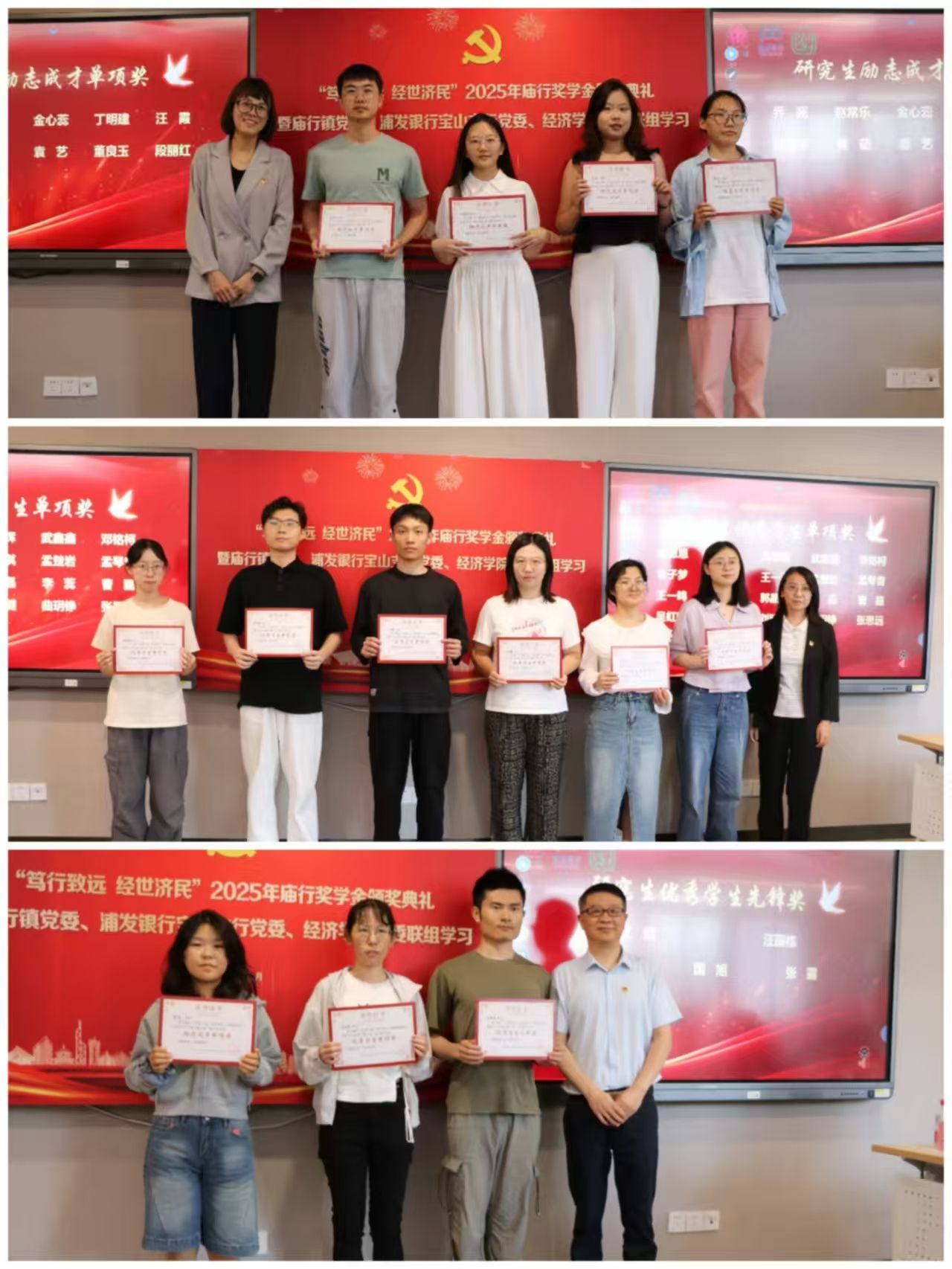 6月16日下午,“笃行致远经世济民”2025年庙行奖学金颁奖典礼暨庙行镇党委、浦发银行宝山支行党委、经济学院党委联组学习在Beat365唯一官方网站宝山校区经管楼580举行。庙行镇、浦发银行、经济学院领导代表出席,“庙行奖学金”获奖学生代表参加活动。