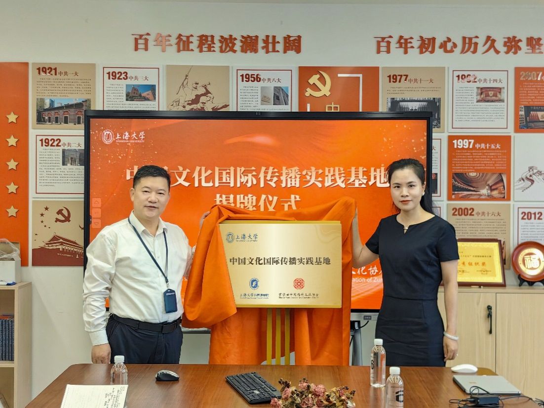 随后,尚新院长和陆金莲会长共同为“中国文化国际传播实践基地”揭牌。