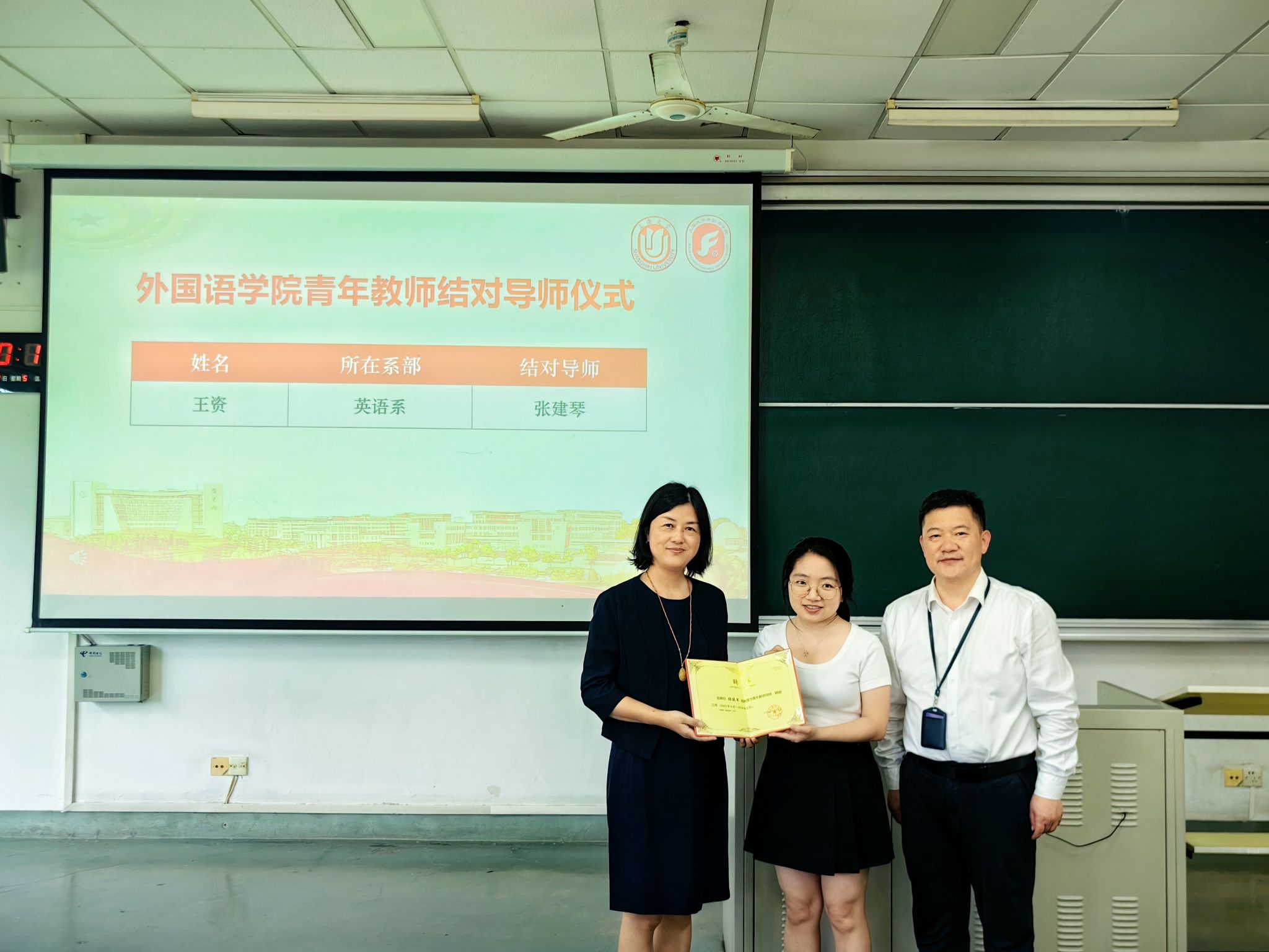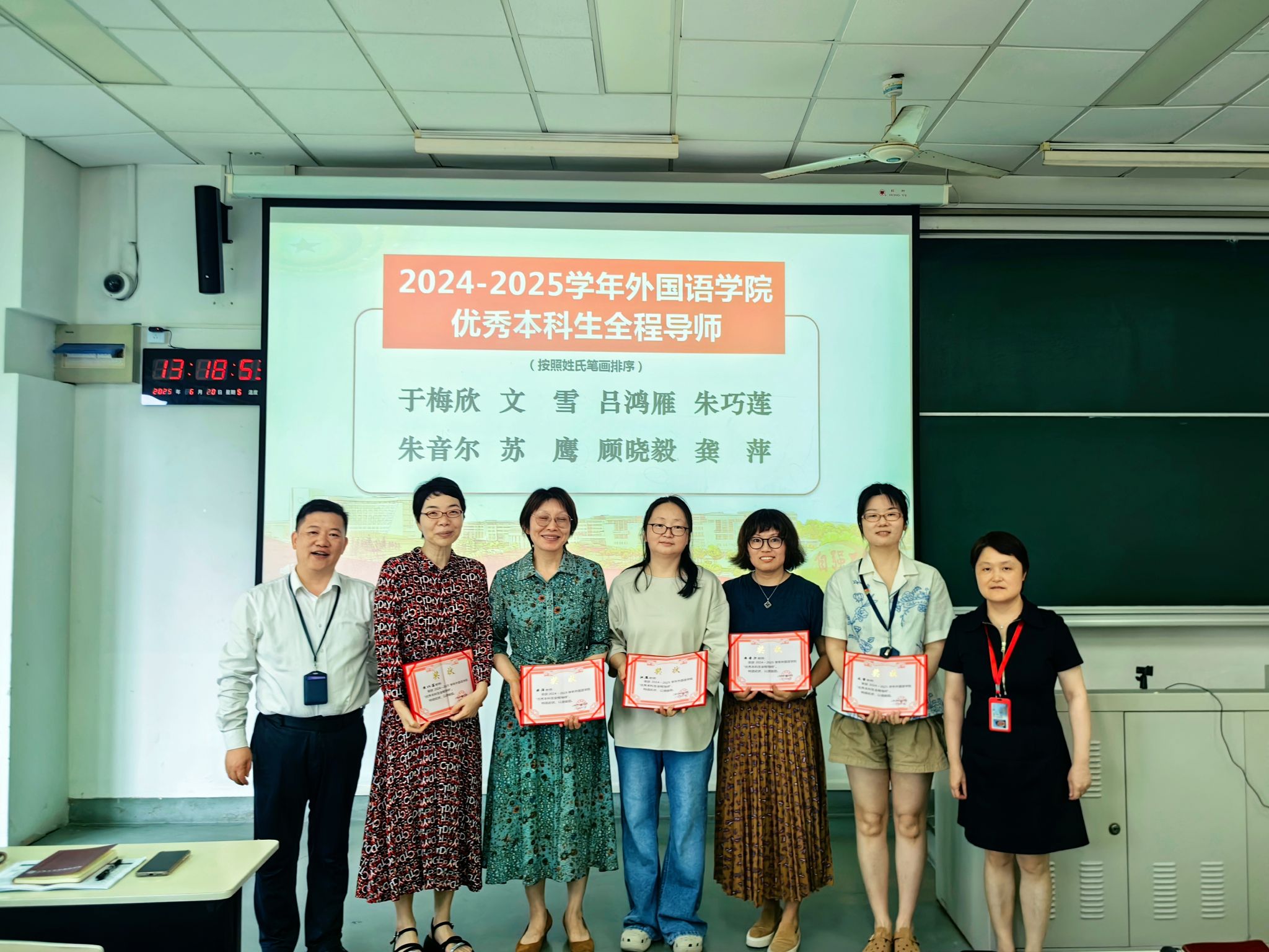 会议伊始,学院党委副书记、院长尚新向全体教职工介绍了新入职的陈友骏教授与陆彩玲副教授,并主持了新进教师王资博士与张建琴副教授的导师结对仪式,进一步强化“以老带新、以新促强”的人才培养机制。吴蔚书记和尚新院长共同为2024-2025学年“优秀本科生全程导师”颁发奖状,以表彰本学年优秀全程导师在育人工作中的突出表现。
