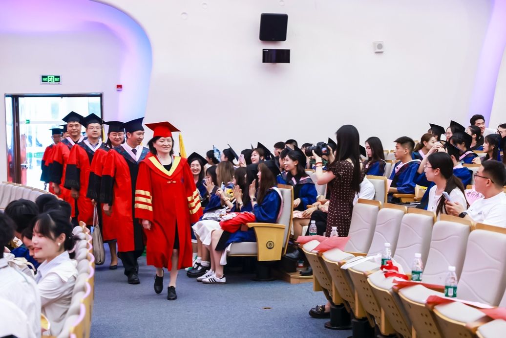 紧随其后,校董代表、特聘教授宋治平从人生经验、自身创业与治学经历多维度真挚分享。她指出,科技创新是企业发展的核心驱动力,也是推动产业升级和可持续发展的重要力量,创新精神对于个人提升和企业发展同样重要,宋董诚挚地结合人生感悟,为毕业生送上“社会第一课”的珍贵指南。