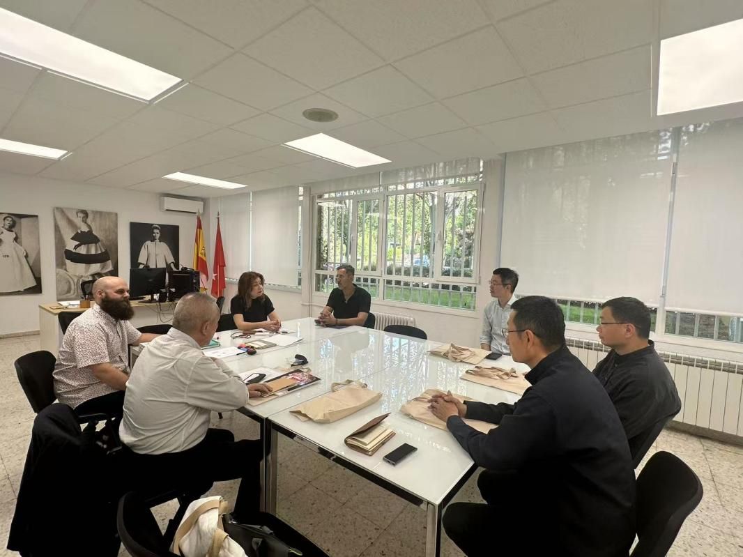 访问马德里理工大学时,代表团与该校设计学院Mercedes Rodriguez副院长进行了工作会谈。双方围绕教授工作坊、艺术通识教育培训等具体项目进行了交流对接,达成初步合作意向。