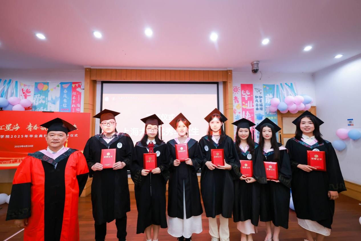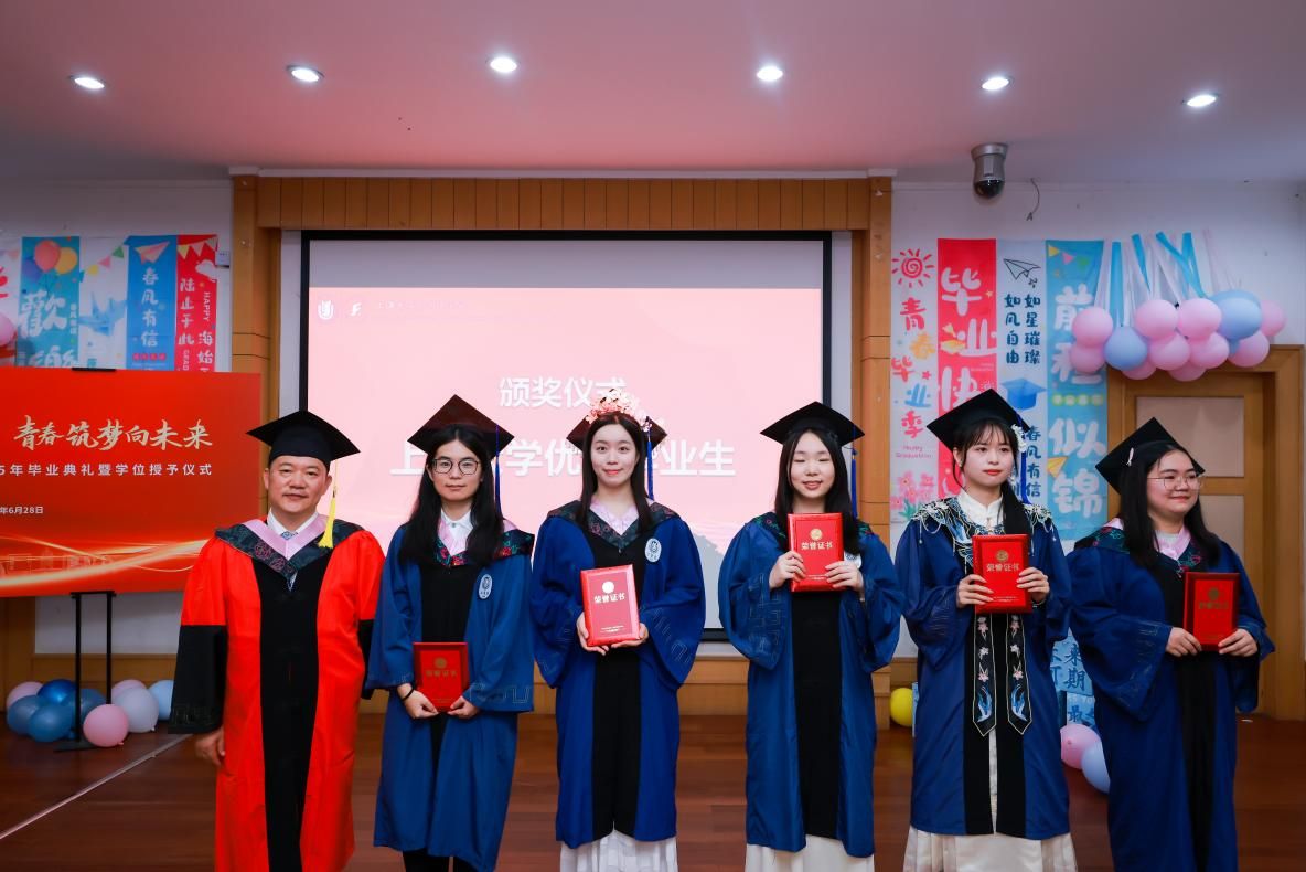 吴蔚书记和尚新院长为上海市和Beat365唯一官方网站优秀毕业生们颁发证书。毕业生们郑重地接过奖状,这不仅是一份荣誉称号和对自己辛勤学习的回报,更是承载了学校、学院、导师的殷切希望,希望他们谨记那份被褒奖的努力,在未来的道路上不忘初心、砥砺前行,向着更广阔的人生舞台接续奋斗。